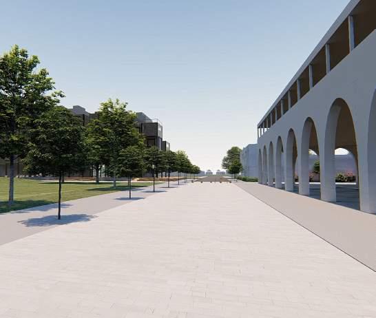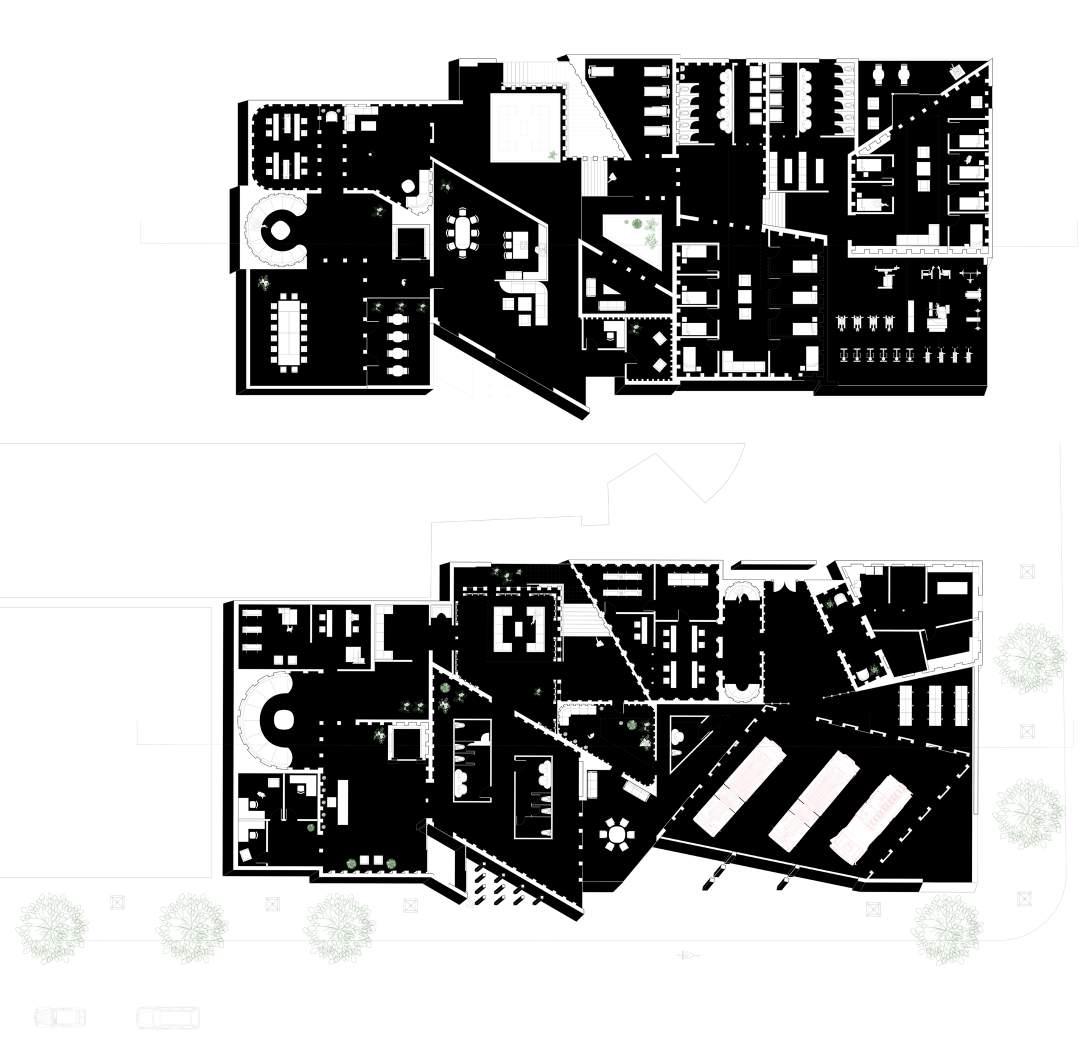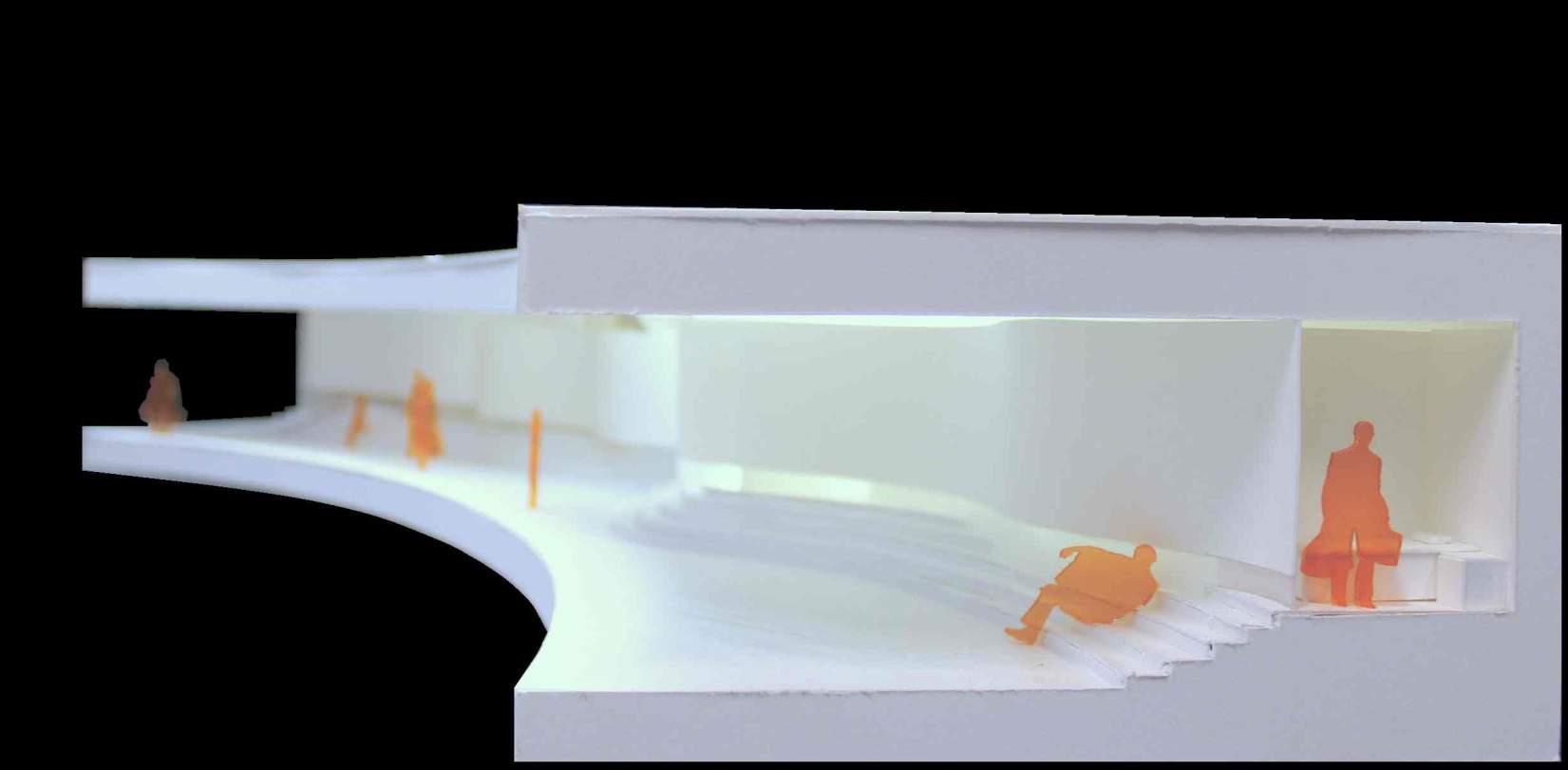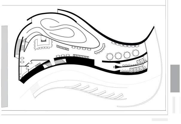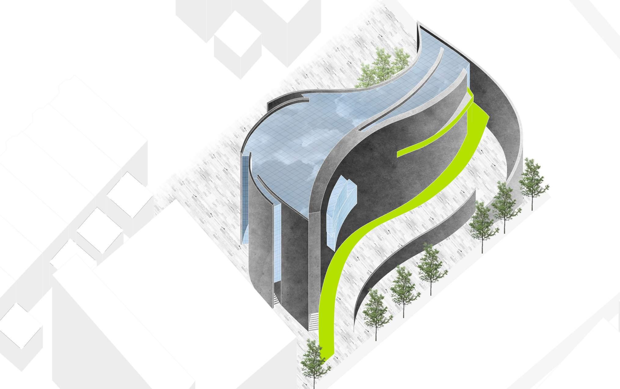 smooth transition of public to pri vate space. The implementation of positive and negative spaces of the ground guided by curves responds to the overall design of the build ing. It also allows for visitors to have a dynamic experience as they are confronted by the dramatic chang es in elevation and absence of walls. Yellow being a color of home, life, community, and family aims to give back to the Ukrainian people as it has a symbolic significance to the culture.