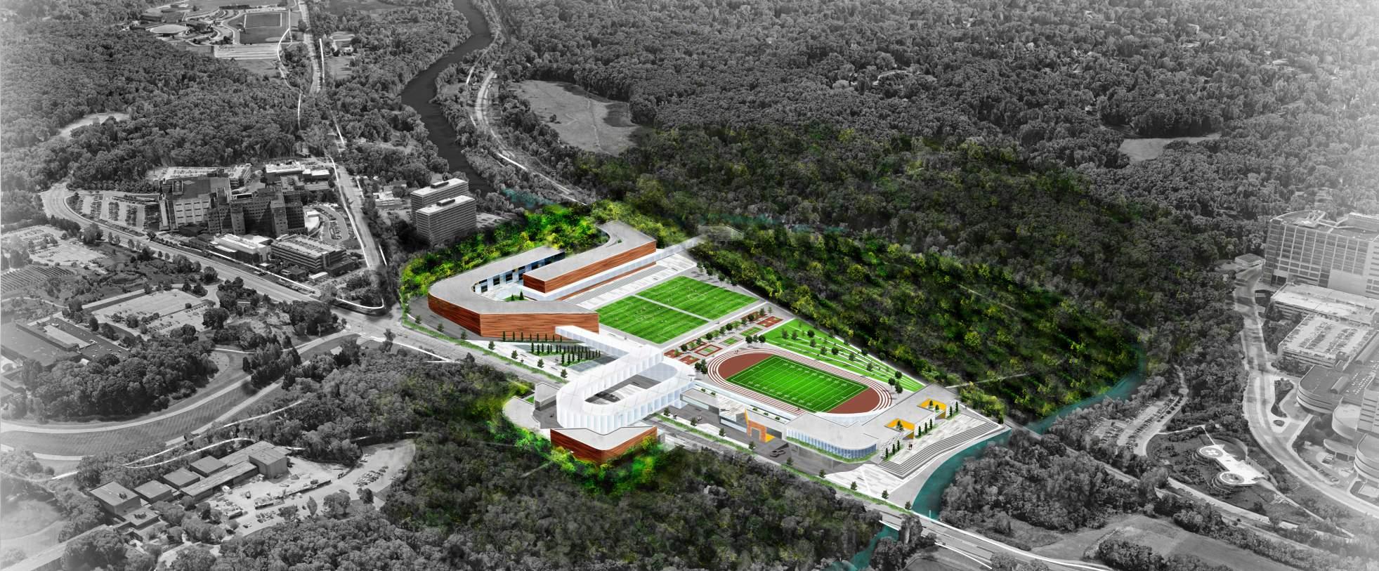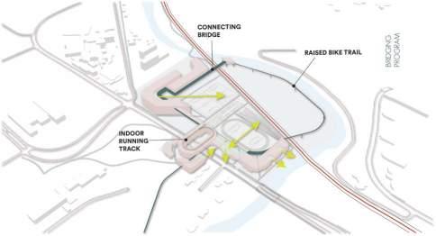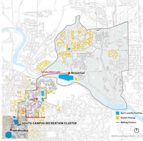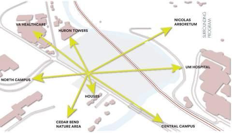 A Fuller North Campus addresses the challenges of North Campus and its lack of connectivity with other university campuses as well as the communities of Ann Arbor. Located on Fuller Road commuter parking lots and Mitchell Fields, this project addresses the shortage of faculty and staff housing, expansive unbuilt environments and surface parking lots, lack of indoor sports facilities, retail, and restaurants in North Campus. In addition to introducing attractive mixed use programs, A Fuller N. Campus also facilitates inter-campuses and campus-city connectivity by implementing a pedestrian and bike trail network that extends out from the site to North Campus, Central Campus, as well the communities of Ann Arbor.