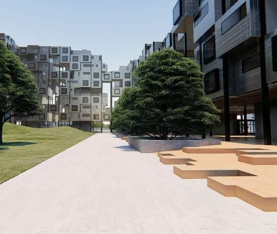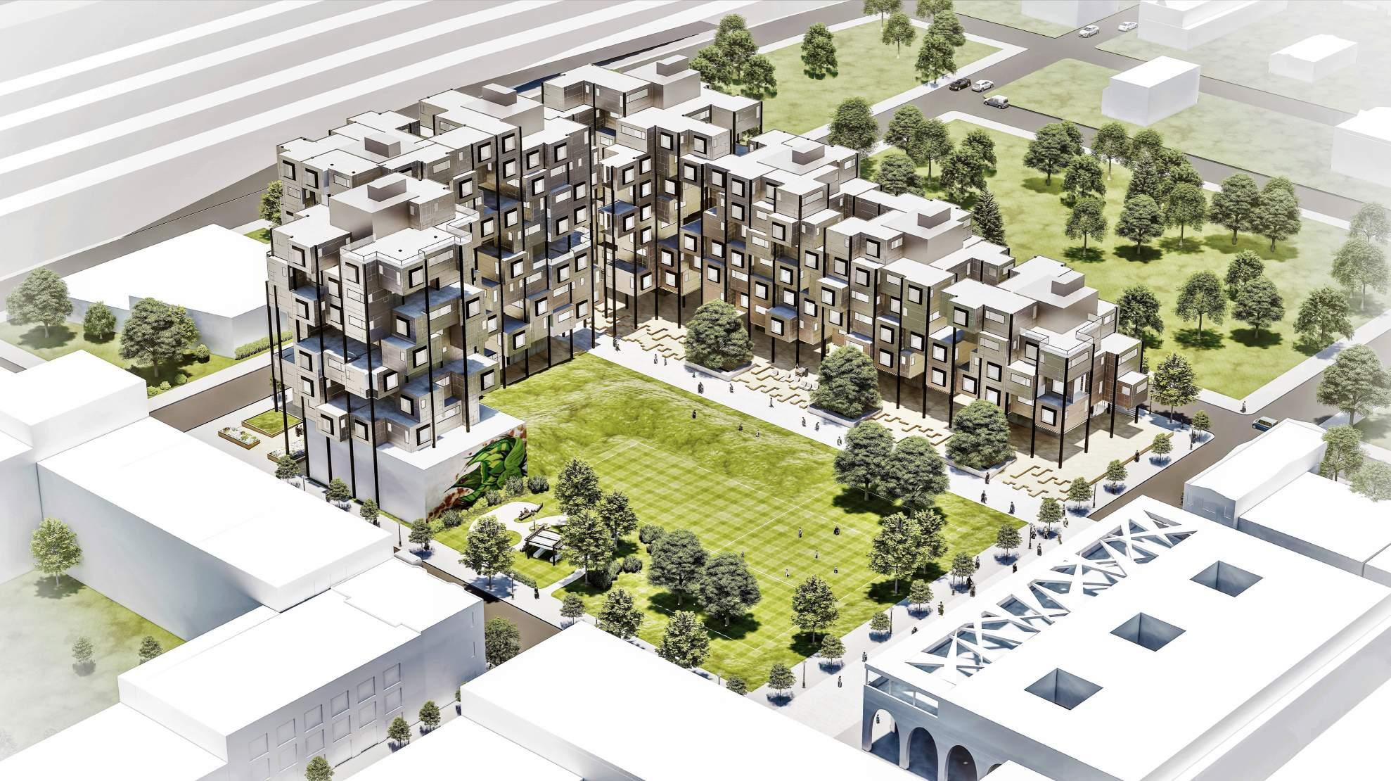 In anticipation of the influx of Ford employees in the near future, we propose NoCoTo for the SouthWestern part of North Corktown, Detroit. As it stands, this neighborhood is in desperate need of revitalization as much as most of Detroit. Located on Rosa Parks Blvd, NoCoTo’s mixed use mid rise buildings are spotted from all the way across the freeway. The location of our site is strategically chosen to allow for a 20 minute transit destination for Ford employees and the community.