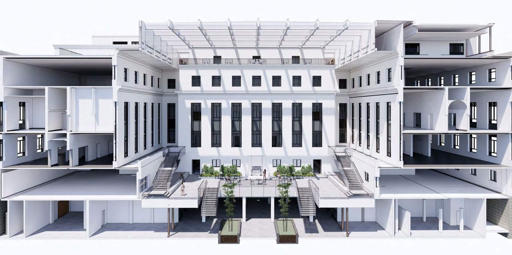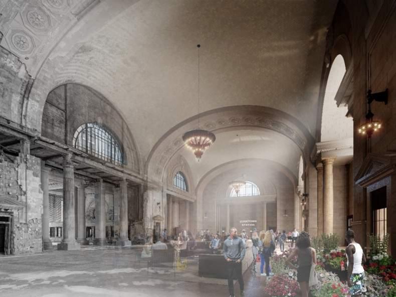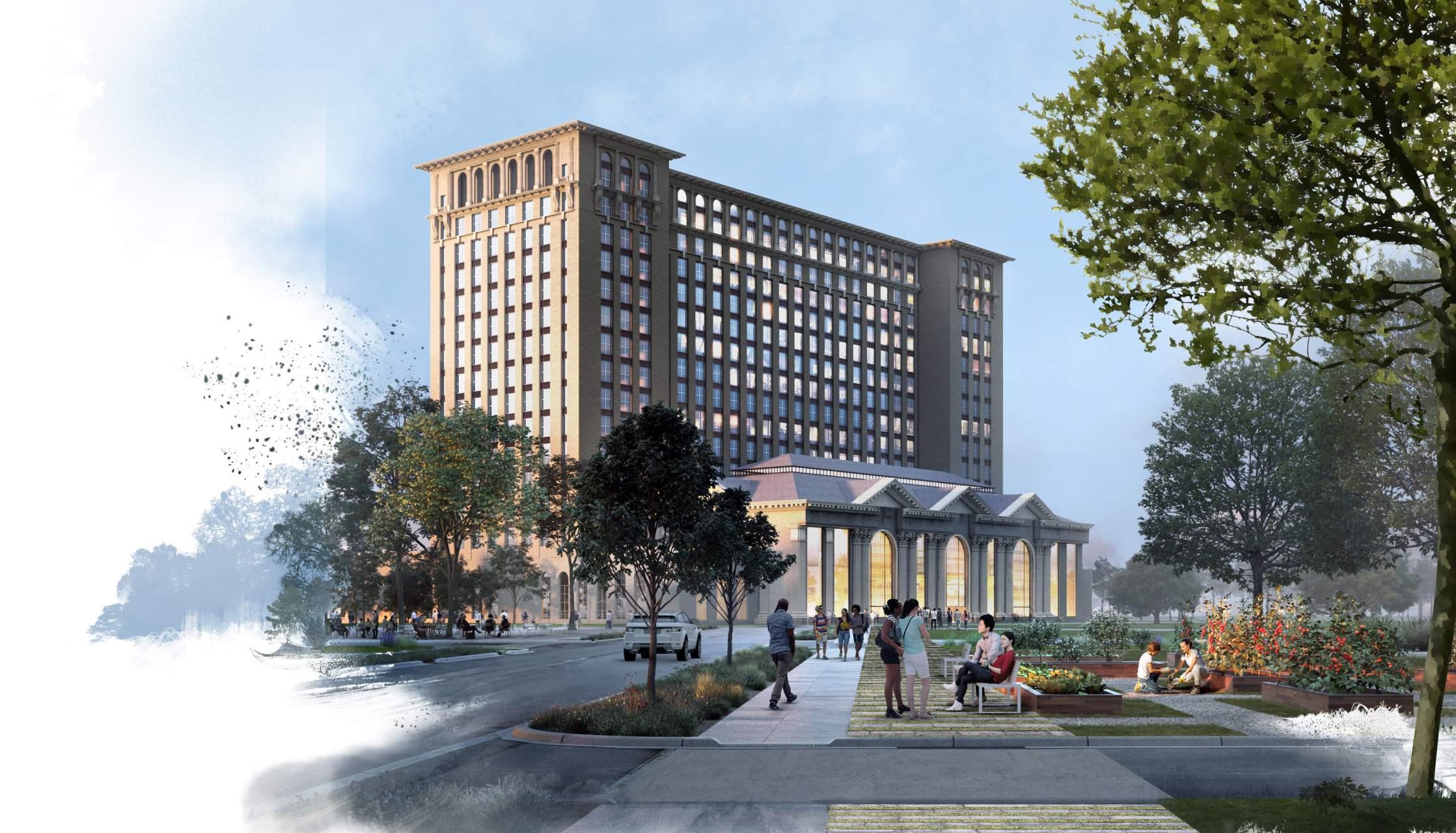 In May 2018, Ford Motor Company (Ford) announced their intent to develop an autonomous vehicle/electric vehicle research and development hub in the heart of Detroit’s Corktown neighborhood, includ ing the revitalization of the historic Michigan Central Station railroad terminal at its core. Ford’s AV/EV hub will be informed by smart city technologies sur rounding concepts of mobility and connectivity while having a positive impact on the neighborhood’s social, economic, and cultural landscape. When completed, the revitalization of MCS will provide renewed public space with a mix of retail and commercial destinations, twenty-frst century work place environments, as well as two foors of hospitality.