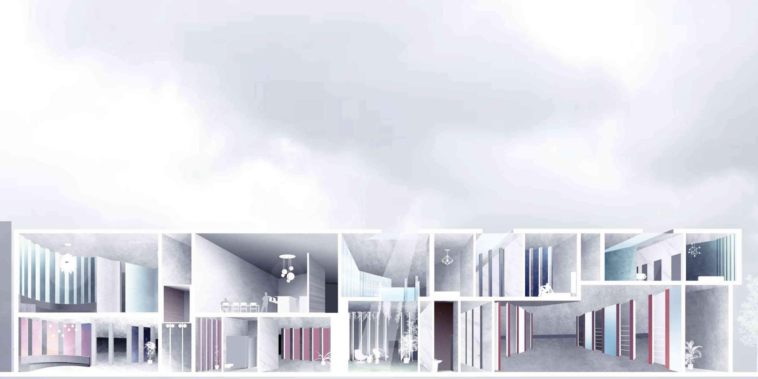 Augmented explores architectural machine hal lucinations through the implementation of neural networking as a mechanism for design. Neural networks, in its most basic sense can be understood as a series of algorithms designed to analyse, interpret, and recognize content within sets of data. The Aug mented neural network produces images of architecture through the image classification process, where we fed AI our curated catalog of data, and it learned to compute regularly repeated patterns from all the data it received.