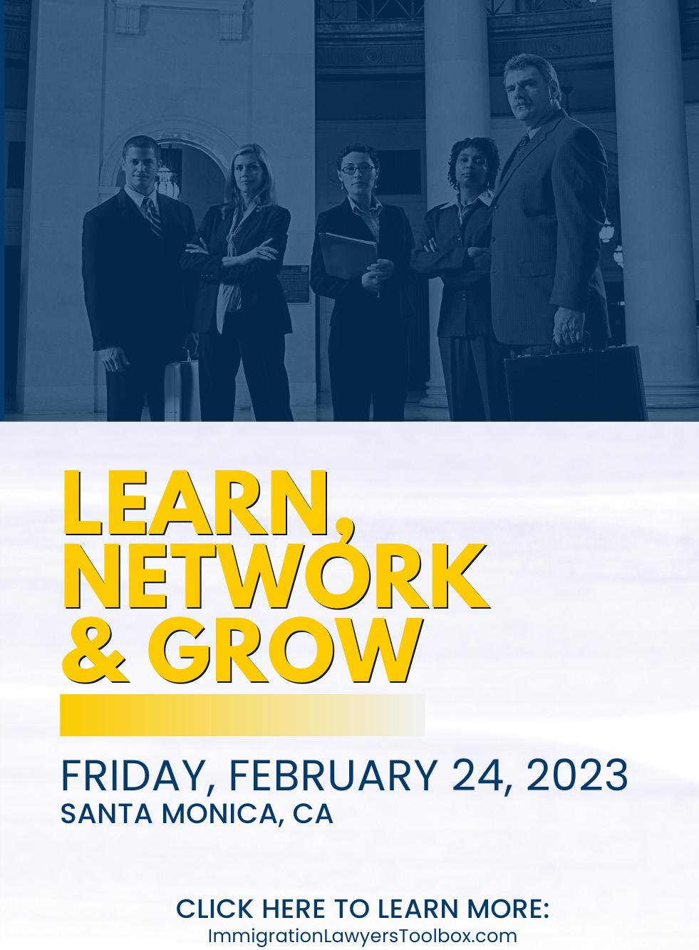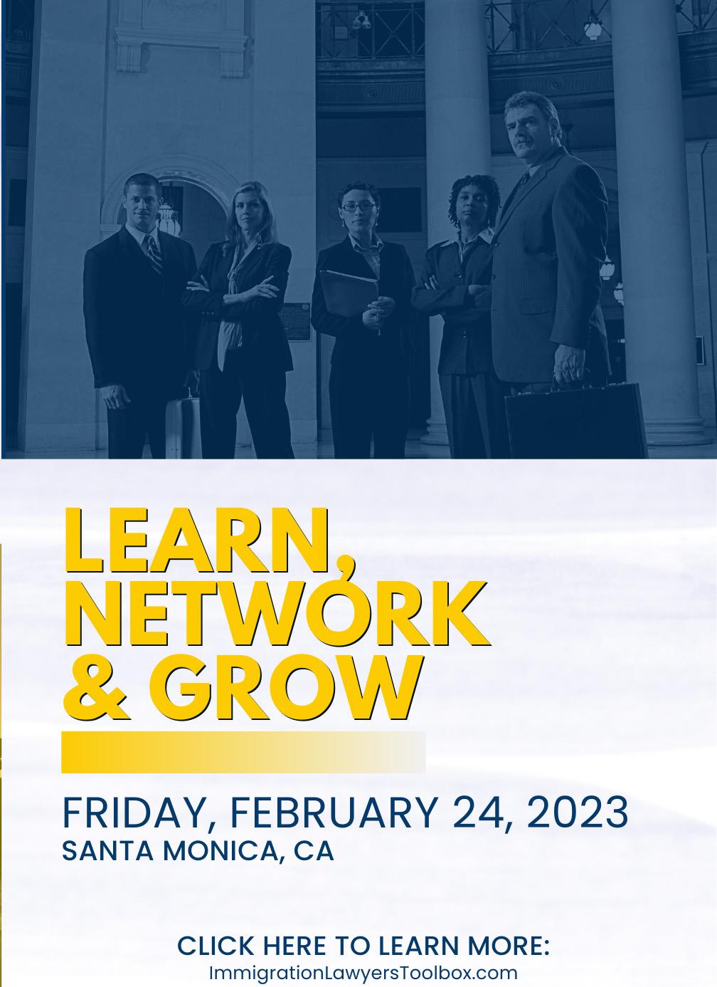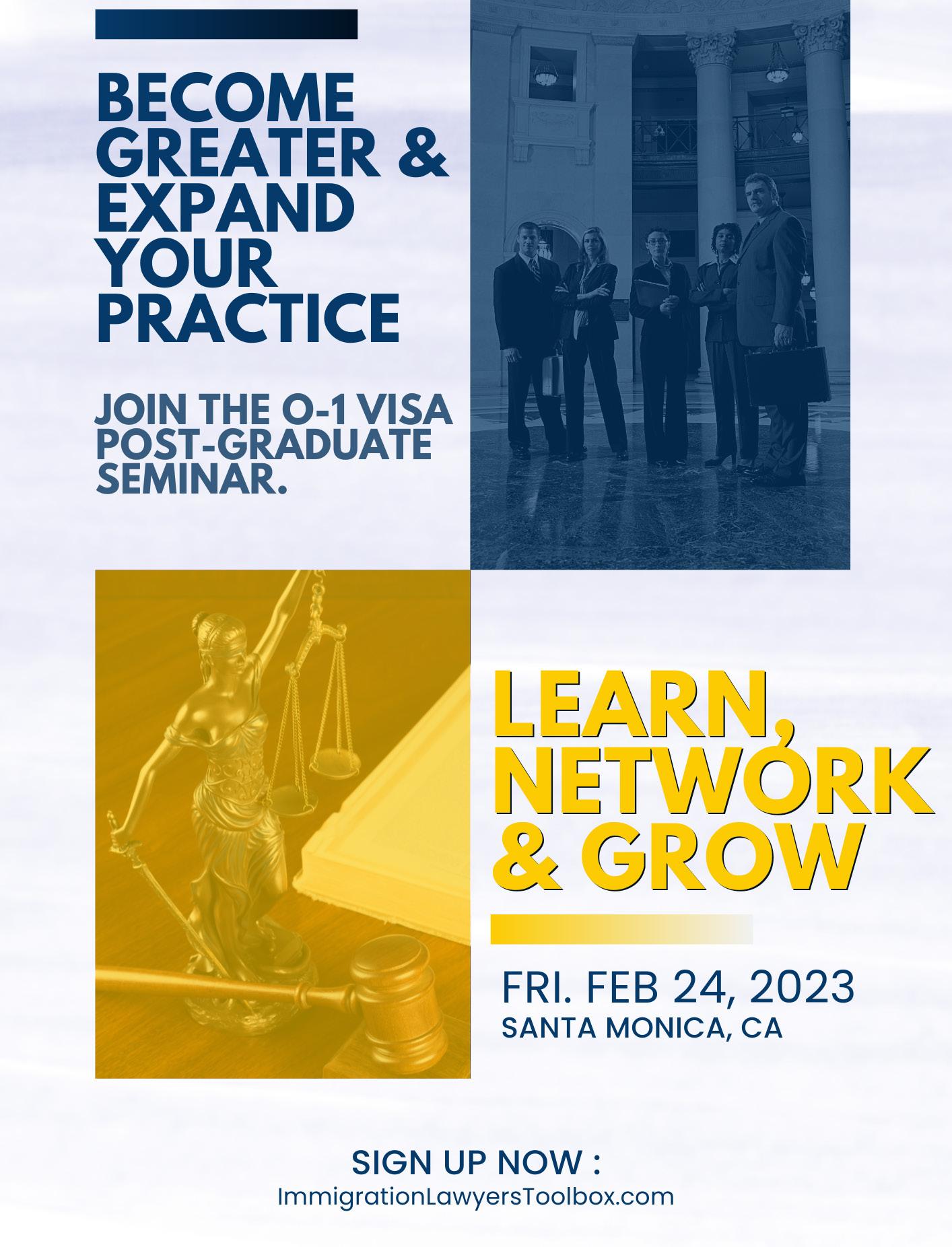 Due to the high demand, we decided to do our frst workshop this winter in Los Angeles, hyper-focusing on the O-1 visa so practitioners can add this specialty to their toolbox. In addition to having the best O-1 practitioners teaching, the group is intentionally being kept small to promote one-on-one networking in the all-day event that goes from breakfast to dinner. I look forward to seeing fellow Toolboxers there and at workshops we will be launching across the country,