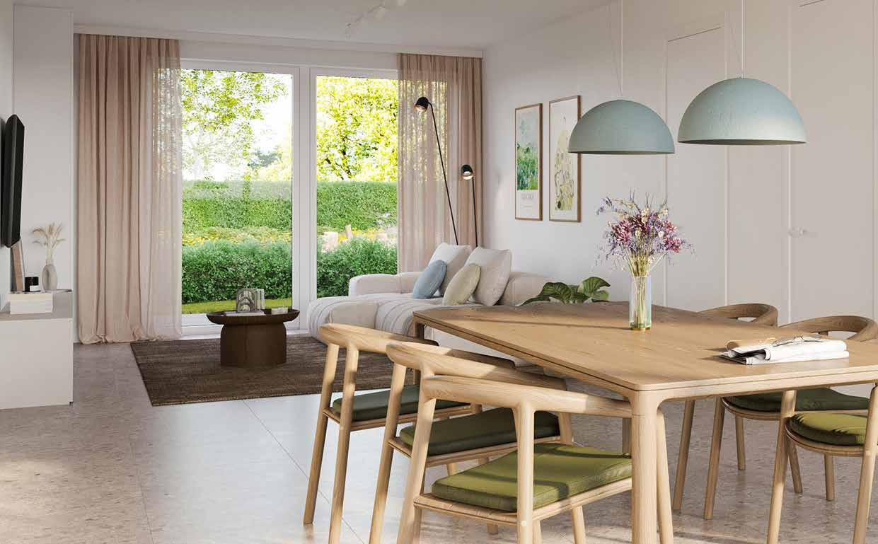 Een geothermische warmtepomp, vloerverwarming, zonnepanelen én een ventilatiesysteem met warmteterugwinning worden standaard voorzien. Zo geniet jij van een energie-efficiënte woning met optimaal comfort en een gezond binnenklimaat. Dat scheelt flink op je energiefactuur.