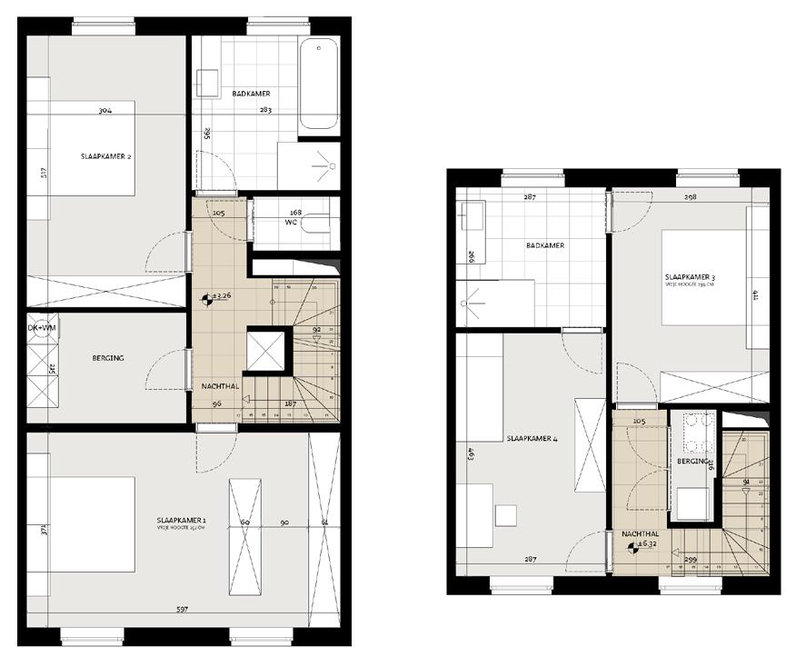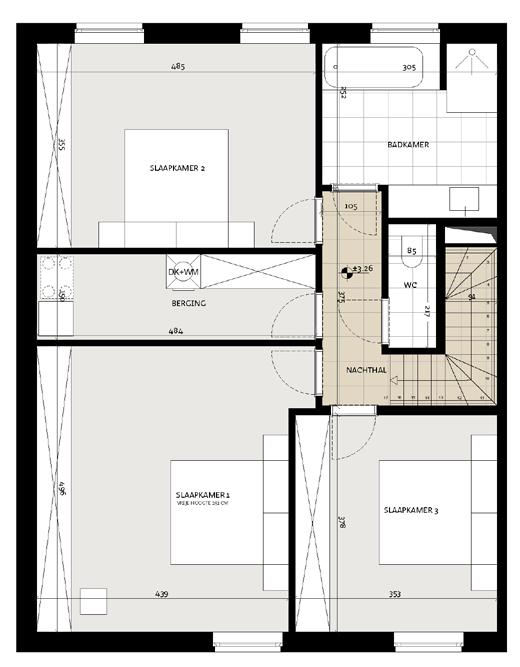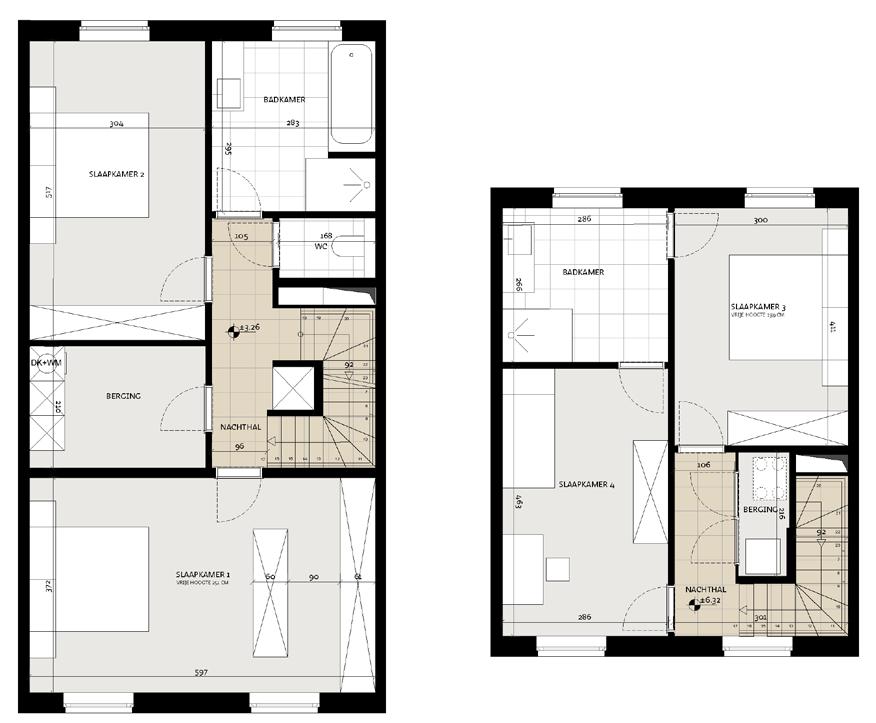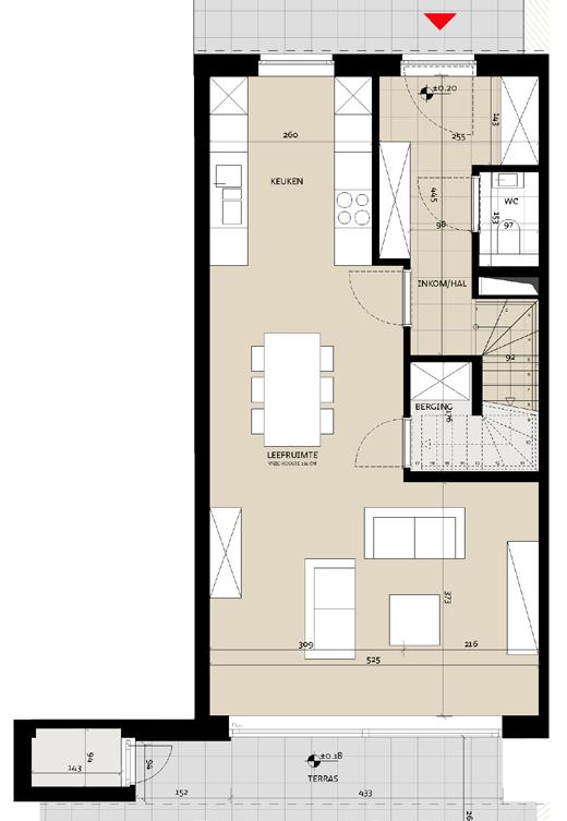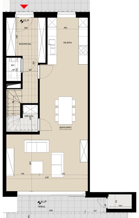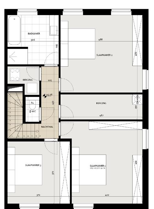 • Op gewelven gelijkvloers en verdieping, excl. fietsen- en tuinberging.