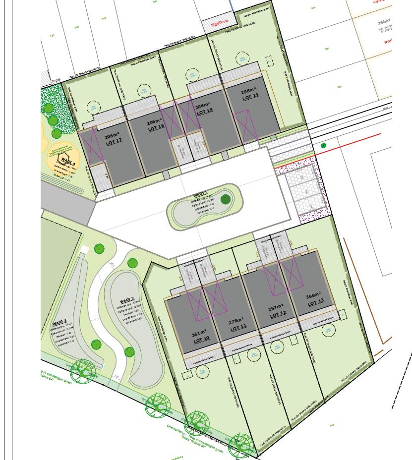 • Hoogstammige bomen in achtertuin langs ‘Groene 62’ (lot 10).