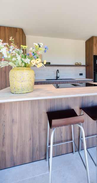 Liesbeth: ”Het is een bewuste keuze bij Danneels om vrij ruime budgetten voor de afwerking van de woning te voorzien. Zo heeft de klant veel mogelijkheden om alles naar zijn eigen smaak af te werken. We dagen hen uit om goed na te denken over die keuzes. Zo wijzen we hen op de mogelijkheden én de beperkingen van sommige materialen. Een bepaalde vloertegel kan mooi zijn, maar is dan weer lastig in het onderhoud.