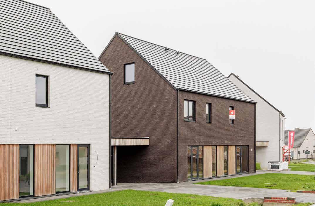 • Buitenspouwmuur (parement + tuinmuur) is een combinatie van de gevelstenen Elegance Nero WF (lot 3, 4, 6, 7)) en Karma White HV WF (lot 1, 2, 5), halfsteensverband, klassiek gevoegd.