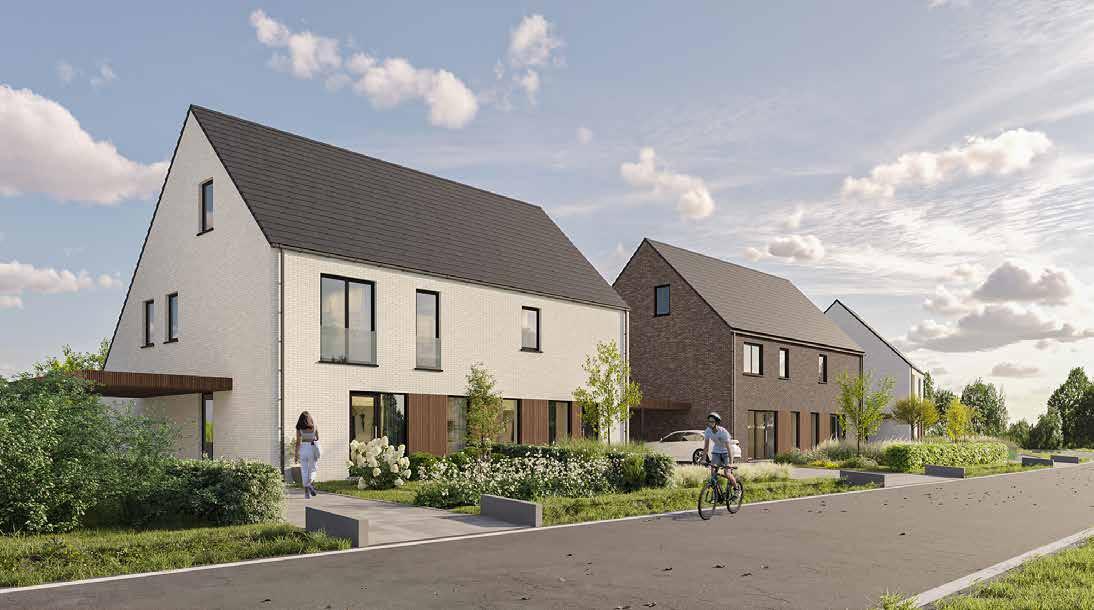 Praktisch ingedeelde ruimtes benutten de woonoppervlakte ten volle. De leefruimtes staan optimaal in verbinding met het terras en de zuid gerichte tuin. Elke woning heeft een ruime en lichtrijke woonkamer, een volledig ingerichte eilandkeuken en badkamer, ruime slaapkamers, een polyvalente zolderruimte, een carport én een mooi zicht op de velden.