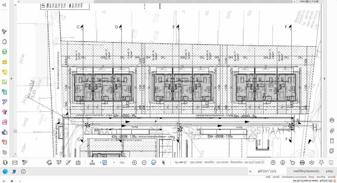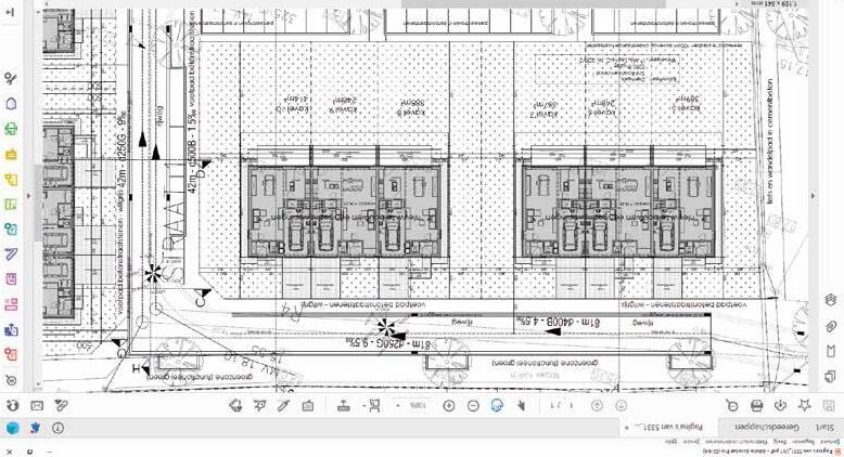 • Isolerende stenen onderaan binnenspouwblad van buitenmuren + asfaltering.