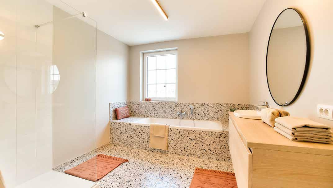 Liesbeth: ”Het is een bewuste keuze bij Danneels om vrij ruime budgetten voor de afwerking van de woning te voorzien. Zo heeft de klant veel mogelijkheden om alles naar zijn eigen smaak af te werken. We dagen hen uit om goed na te denken over die keuzes. Zo wijzen we hen op de mogelijkheden én de beperkingen van sommige materialen. Een bepaalde vloertegel kan mooi zijn, maar is dan weer lastig in het onderhoud. Die dingen kunnen bepalend zijn.”