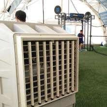 Sistema de climatización natural que permite enfriar el aire cuando hace contacto con el agua, proporcionando grandes volúmenes de aire fresco