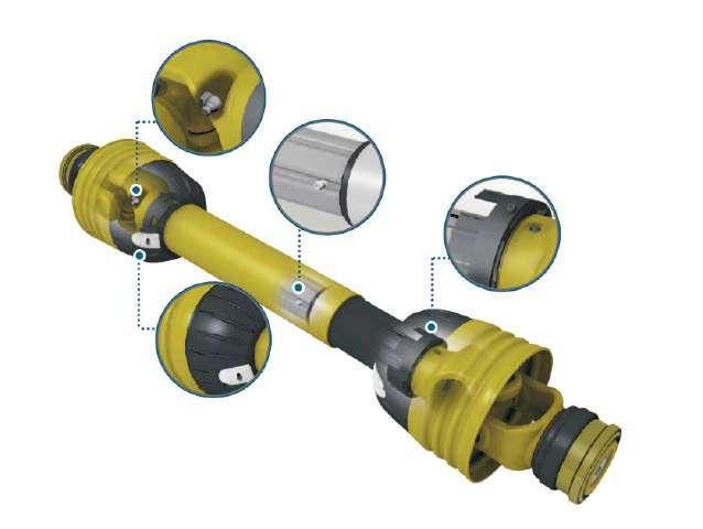 Cardanes diseñados para que en su articulación durante la rotación, la velocidad del eje de salida no siempre sea igual a la del eje de entrada. Esta diferencia de velocidad depende del ángulo de articulación de la misma. El árbol de transmisión de la toma de fuerza para aplicaciones agrícolas consta de dos juntas cardánicas y un acoplamiento telescópico. El cardán, que consta de dos horquillas y una cruceta, es el elemento utilizado para transmitir el movimiento entre dos ejes inclinados.