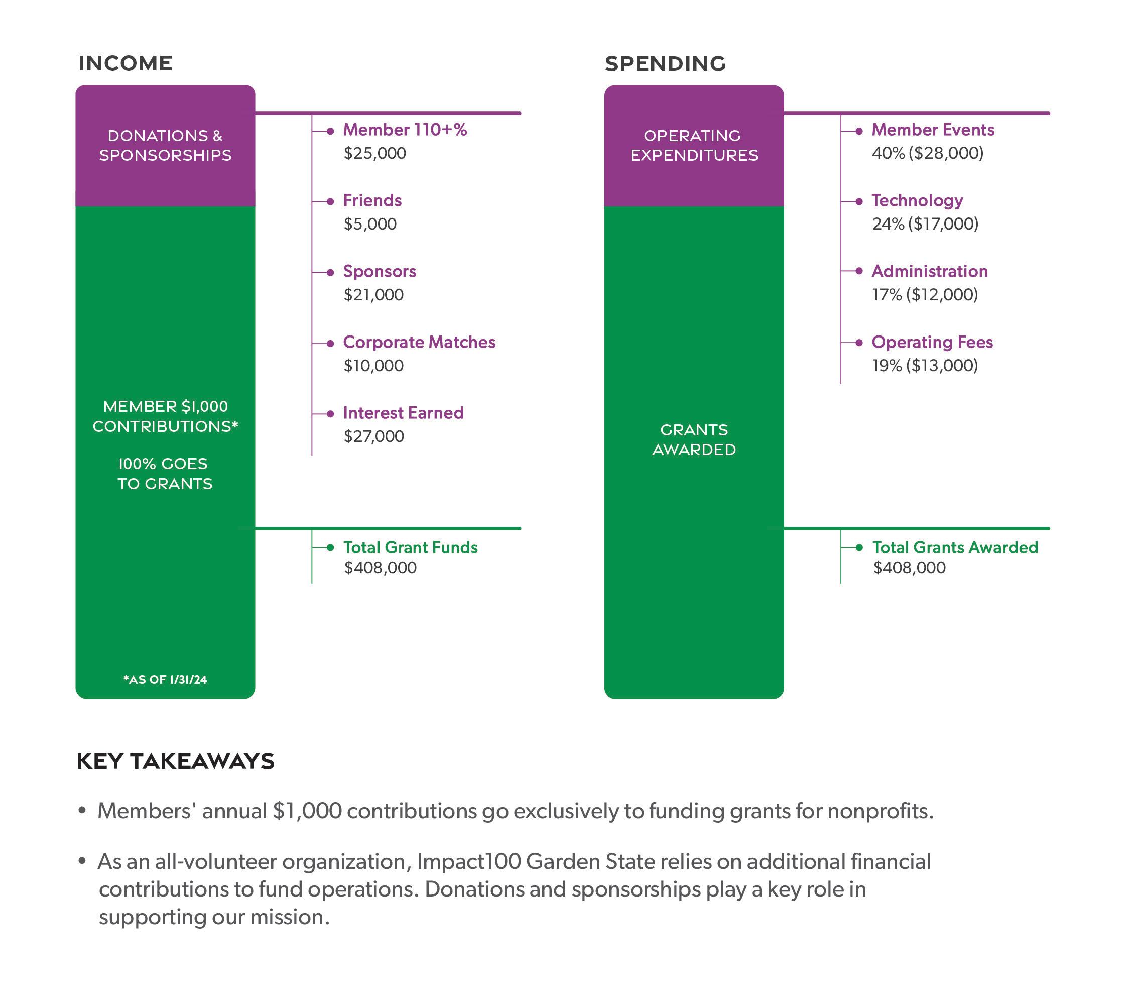 We are excited to share Impact100 Garden State’s inaugural annual Impact Report with you. This report details the significant outcomes of our grants from July 1, 2023, to June 30, 2024, reflecting our commitment to transparency and accountability to our Impact100 Garden State community.