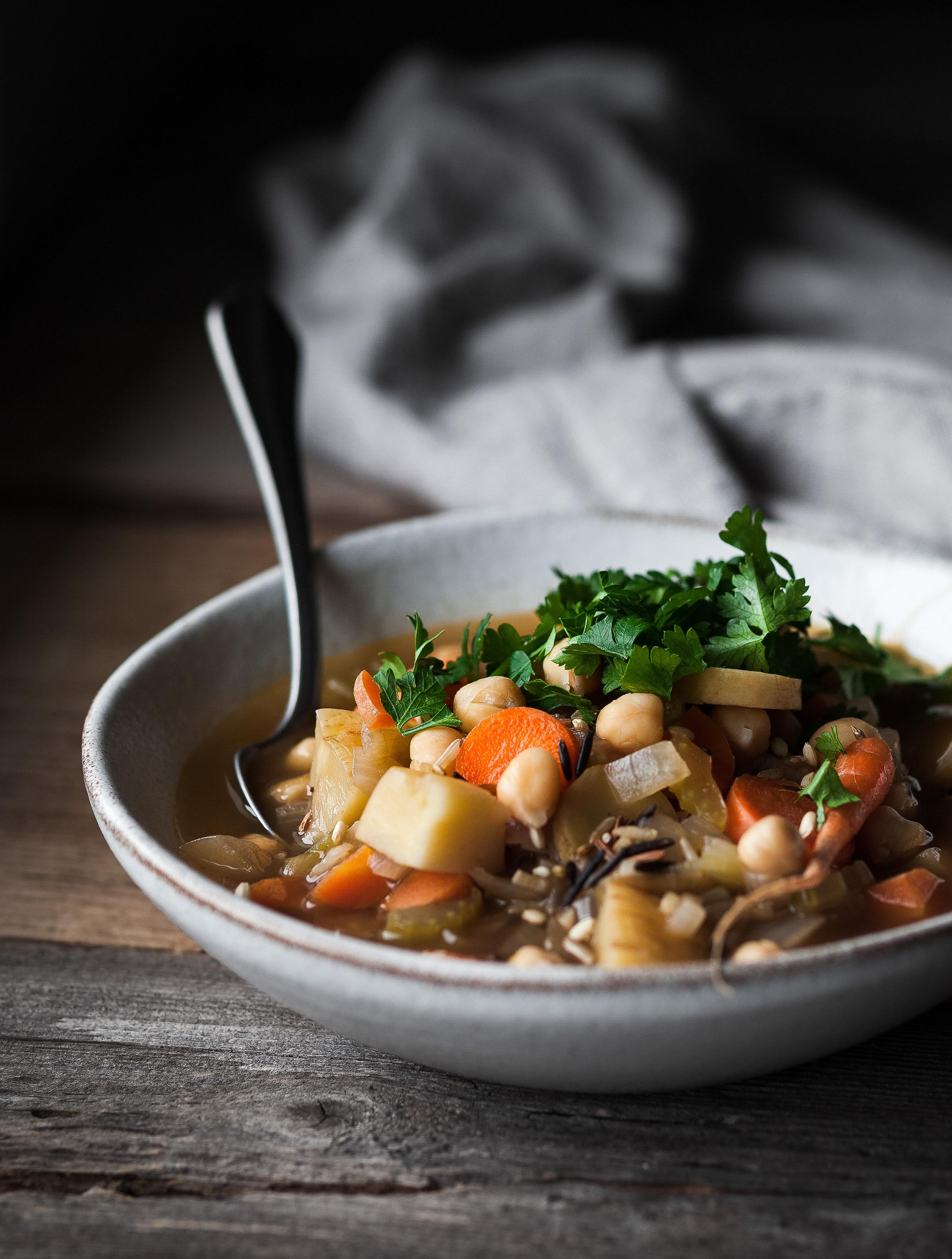 Winter Vegetable Soup with Chickpeas & Wild Rice