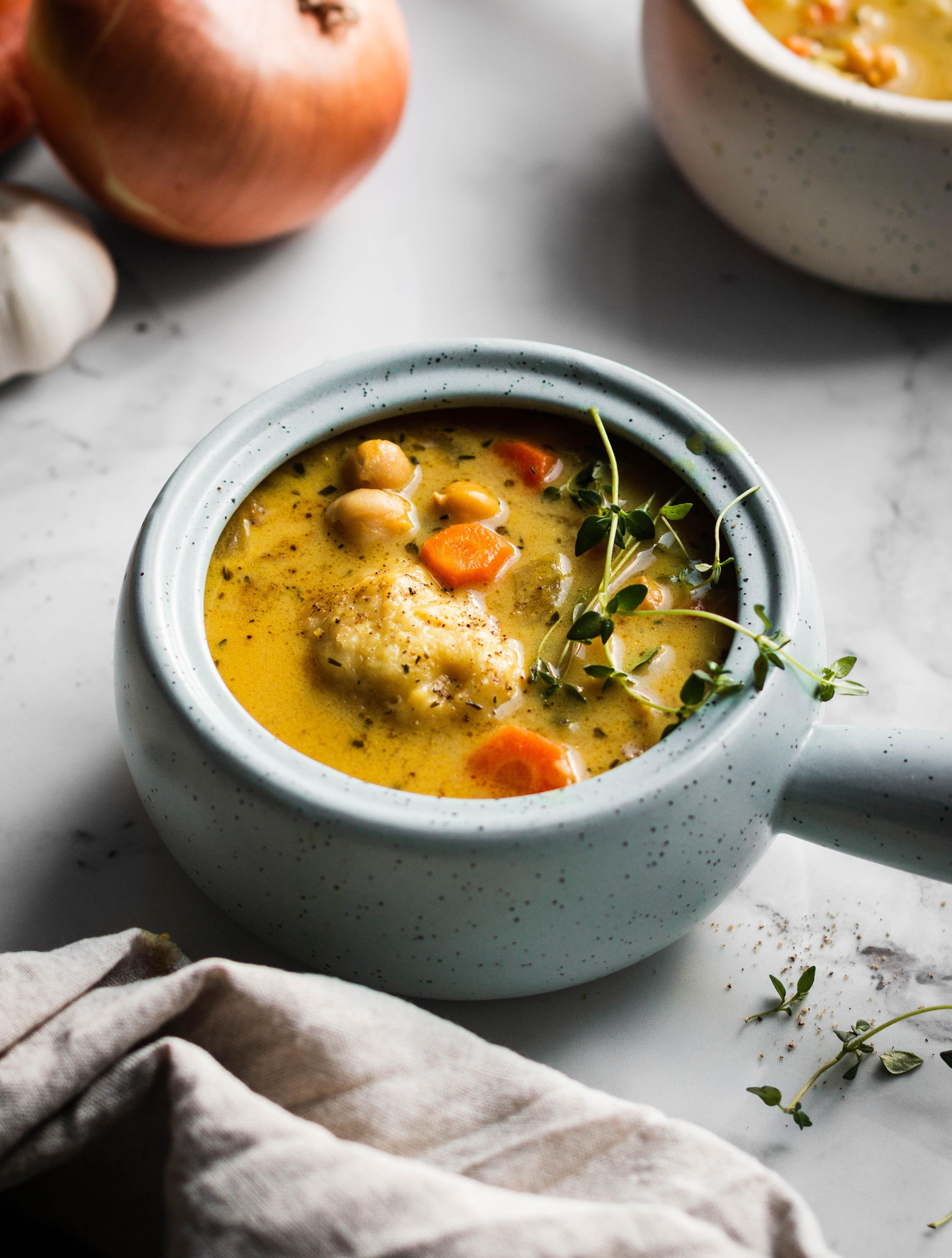 Chickpeas and rice add protein to this simple and satisfying winter vegetable soup