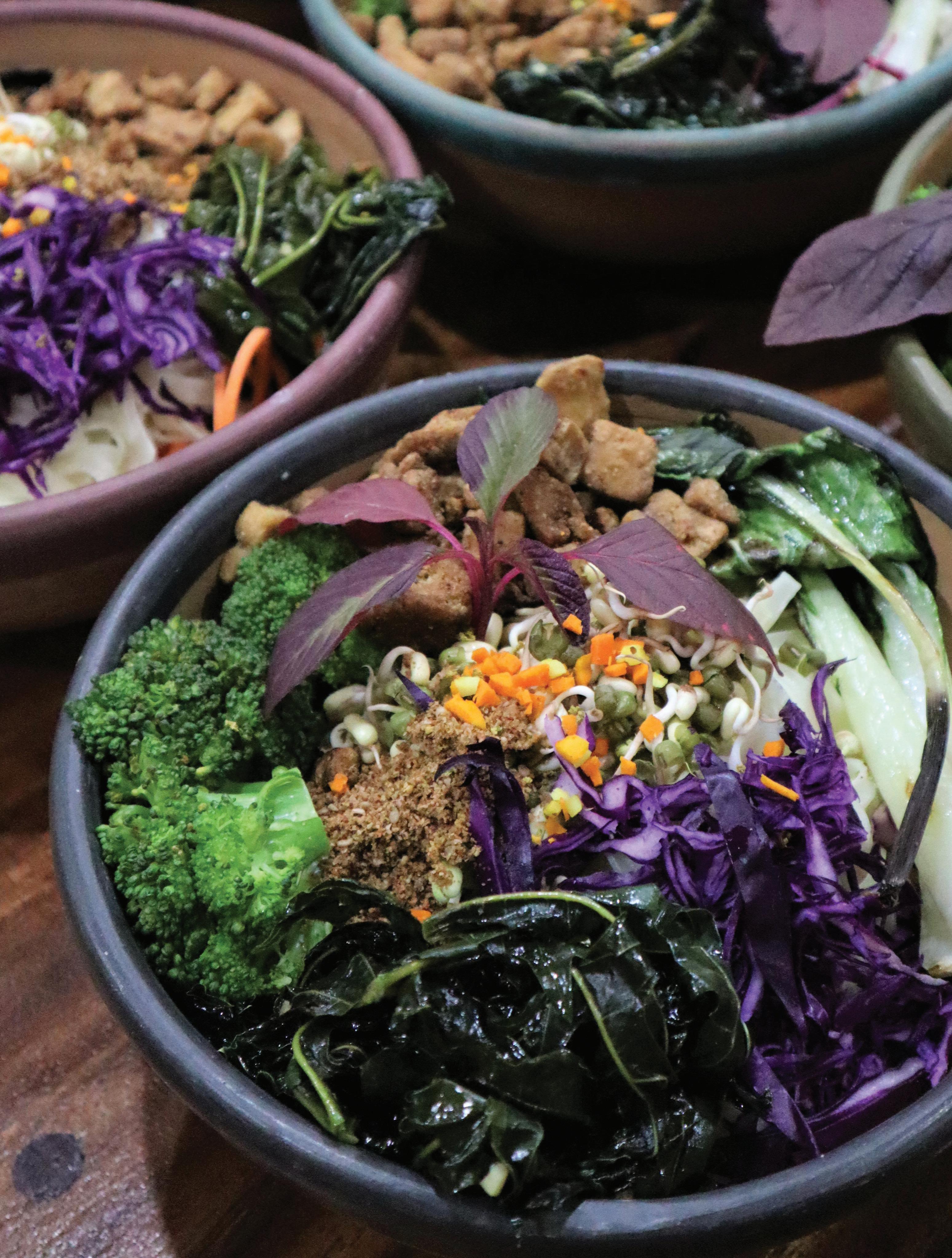 Enjoy a vibrant, nourishing twist on traditional ramen, packed with plant-based goodness. The creamy coconut and vegetable broth, infused with garlic, ginger, turmeric, and Chinese five-spice, provides a comforting, flavourful base. Kelp noodles keep it light while delivering a satisfying texture, and the mix of broccoli, purple cabbage, leafy greens, and marinated shiitake mushrooms adds colour, crunch, and essential nutrients. Rich in healthy fats and antioxidants, this bowl is both energizing and soothing—a perfect balance for body and mind.
