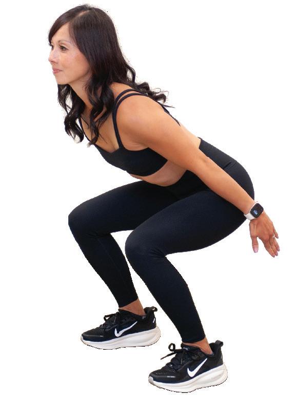 2. Sit into your heels and bend your knees keeping your core engaged and head and chest forward.