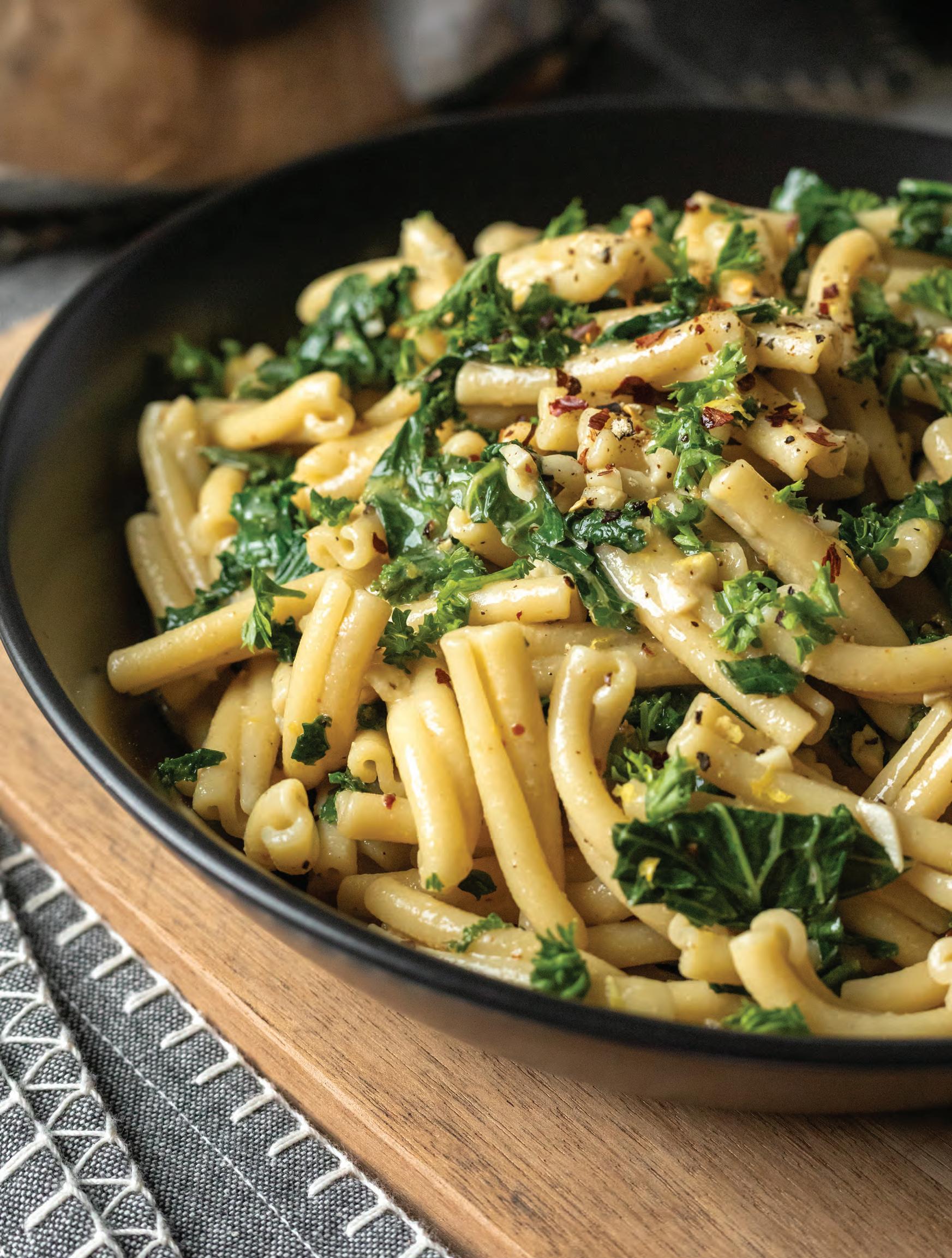 Make it more filling with cooked cannellini beans, chickpeas, or your favourite plant-based sausage. Instead of kale, try peas, spinach, zucchini, tomatoes, broccoli or cauliflower.