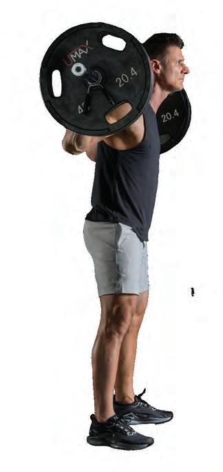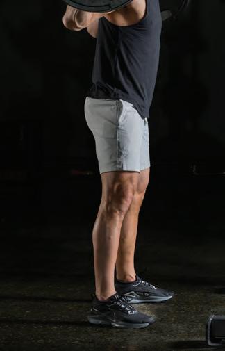 Before initiating the squat, remember you are looking to build strength while keeping the movement pattern in line with sprint and jump mechanics, which means maintaining lumbopelvic stability (LPS) while driving from the hips. It’s not functional if you are not moving through the hip and knee together, because this is what happens when you run and jump. This squat position also helps maximize posterior-chain engagement.