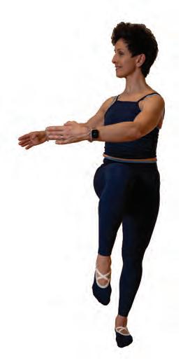2 sets, 8-12 reps + 16 count balance hold Stand with feet wider than hips, toes turned slightly out. Press through the balls of your feet to lift your heels, then lower with control, stopping just before the heels touch the floor. Continue for 8-12 reps, maintaining constant tension and resistance. Weight is evenly distributed in all 10 toes. After your final rep, hold at the top (heels lifted) for 16 counts, staying tall through the spine and steady through the ankles as you balance here.