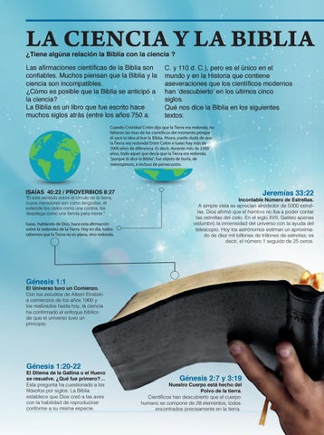 C. y 110 d. C.), pero es el único en el mundo y en la Historia que contiene aseveraciones que los científicos modernos han ‘descubierto’ en los últimos cinco siglos. Qué nos dice la Biblia en los siguientes textos: