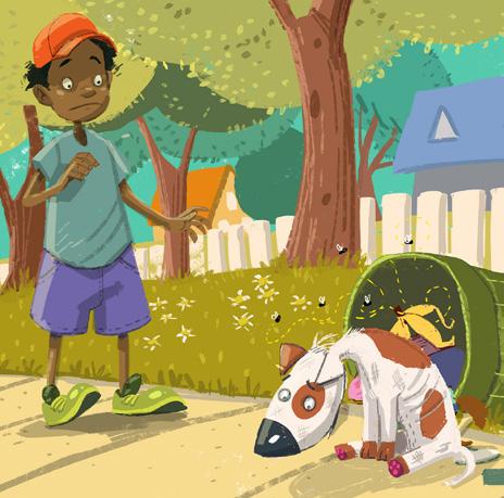 Lebo stap in die straat. Hy sien ’n hond.