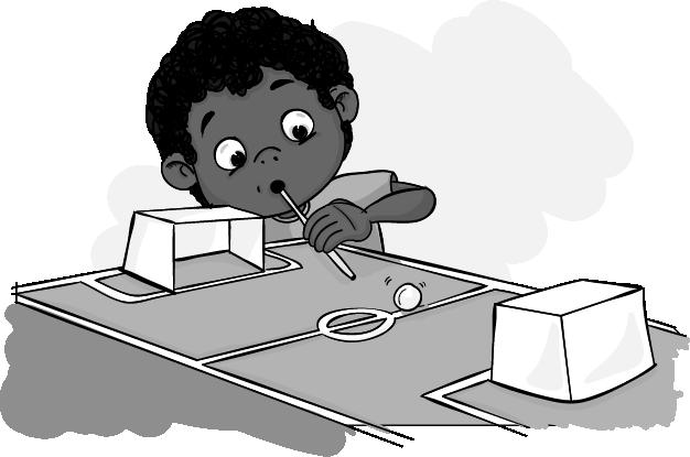 7. Elke speler gebruik ’n strooitjie – blaas deur die strooitjie om die “bal” te beweeg.