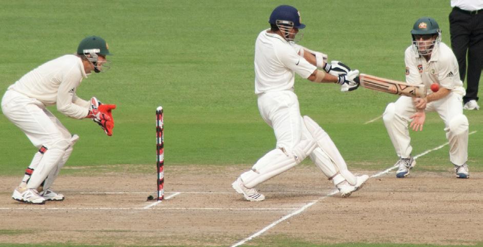 Tendulkar slaan die bal in ’n toetswedstryd teen Australië in 2010, waarin hy 214 lopies in die eerste beurt aangeteken het.