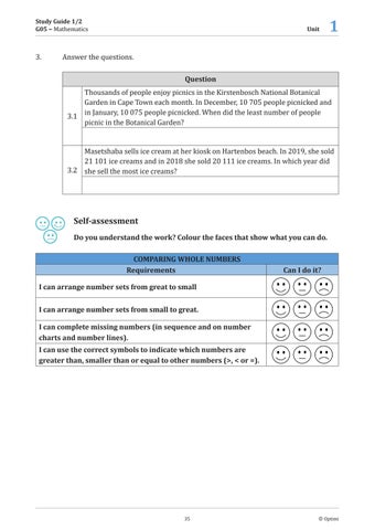 Self-assessment Do you understand the work? Colour the faces that show what you can do. COMPARING WHOLE NUMBERS Requirements