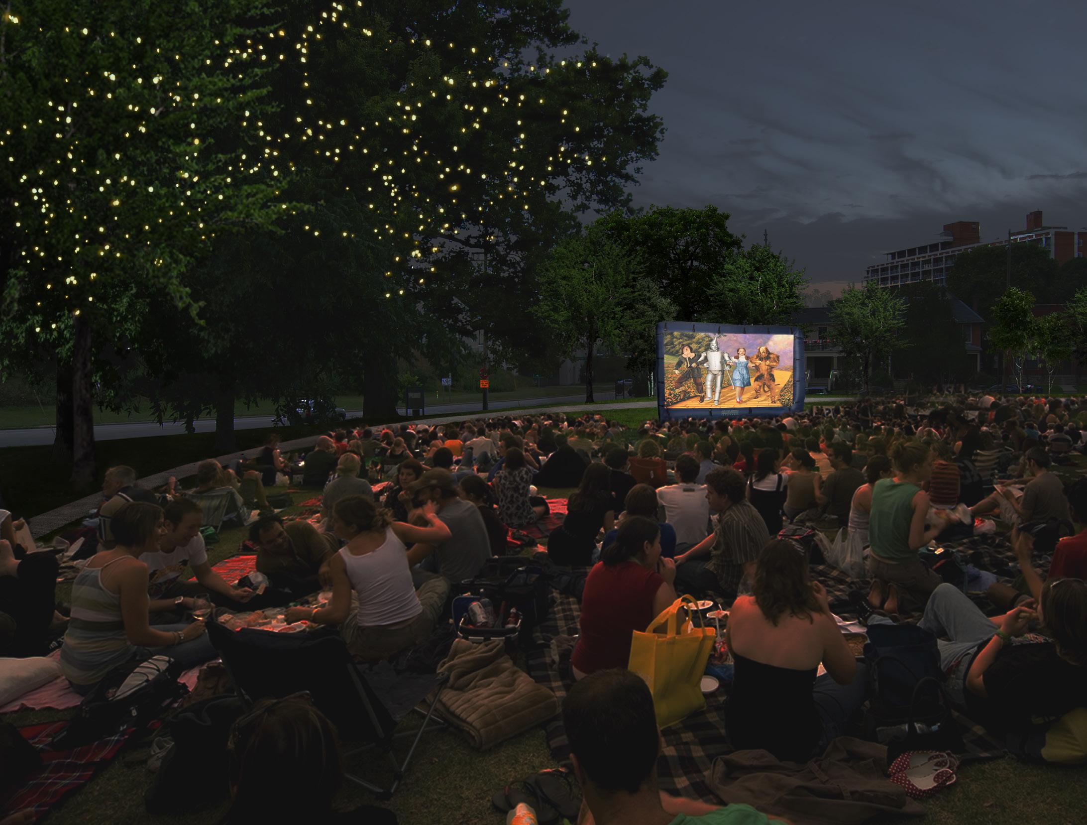 Goodale Park’s Sculpture Garden will be situated within lawn space that is currently underused, and will become a strong edge condition separating the parks interior parking and the East Lawn. It will also become a unique experience within the park, allowing visitors to meander through tall, unmowed grasses and native wildflowers. The path system within the Sculpture Garden will be a simple mowed path which could expand into a small clearing where sculpture could be showcased. At night this space would utilize up-lighting to highlight the sculptures and provide the park with a space which is potentially more attractive during the evening than during the day. The art within the garden could be on loan from public and private institutions and could follow a set rotation cycle.
