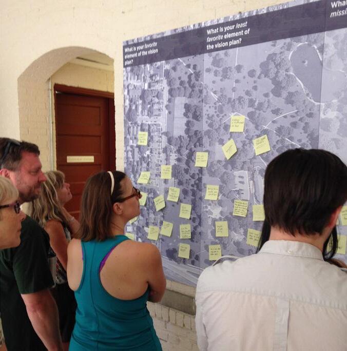 The Goodale Park Vision Plan Open House provided the Columbus community an opportunity to view the planning and design work that the Vision Plan team had created. The team did not view this event as a culmination exhibition, but rather a forum where ideas could be generated which would have a direct impact on the direction that the Vision Plan took. This gallery-style exhibit encouraged the community to view the proposed concepts and voice their opinion. It also allowed the team to receive more indepth feedback from the public regarding their perceptions of Goodale Park and the Vision Plan.