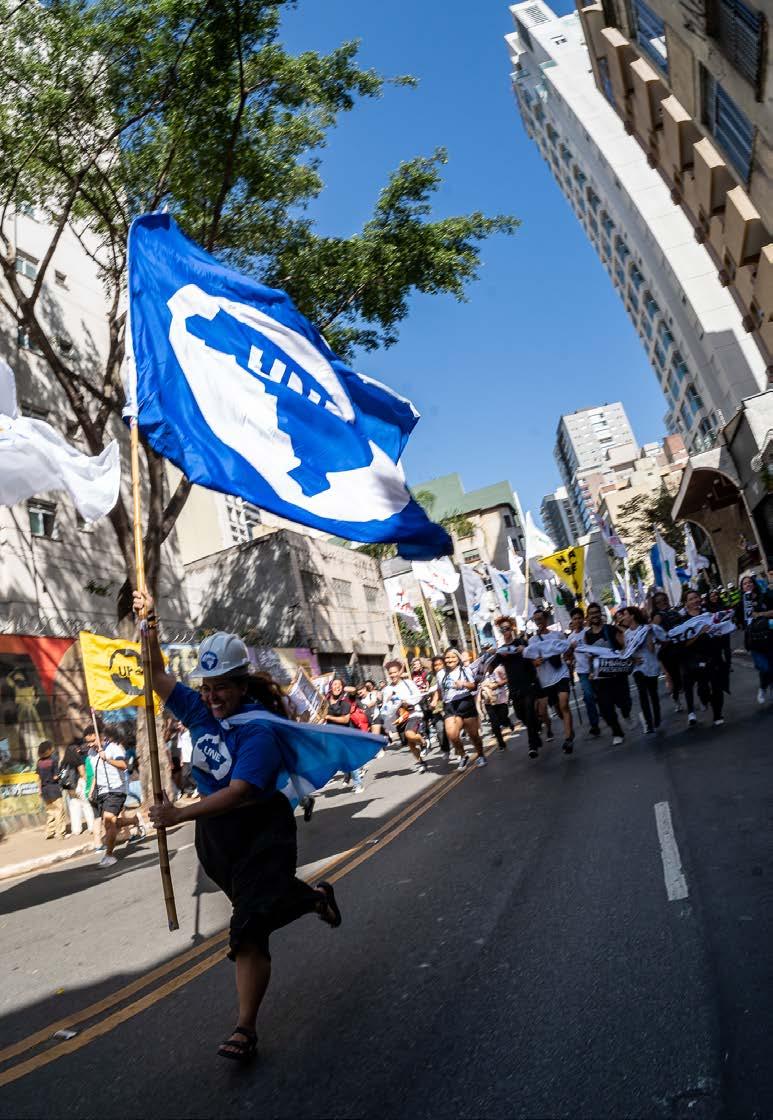 “A COP que acontecerá em Belém, no Pará em 2025, deve ser protagonizada pelos estudantes. A UNE tem a capilaridade de reunir as vivências de dois públicos fundamentais nessa discussão: os estudantes pesquisadores, que estão na ponta de estudos e tecnologias essenciais para o enfrentamento da crise climática, bem como os estudantes mais vulneráveis que mais sofrem com as consequências do aquecimento global”.