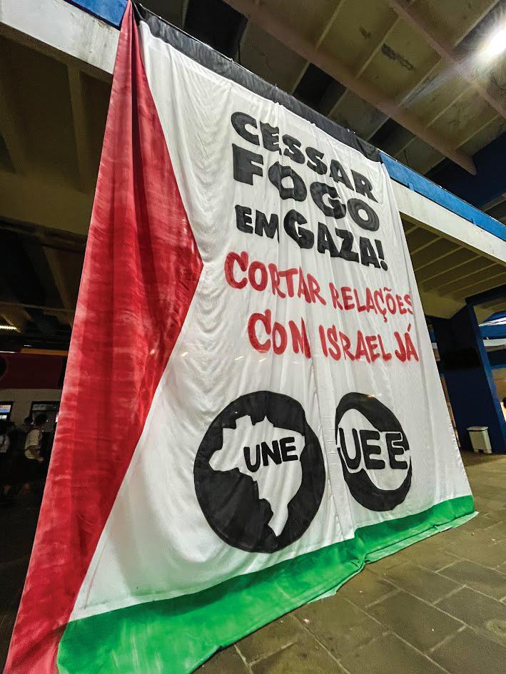 A União Nacional dos Estudantes (UNE) tem atuado junto a parlamentares progressistas para cobrar que o governo Lula suspenda relações diplomáticas com Israel e envie ajuda humanitária urgente à população de Gaza. A entidade também articula a apresentação de moções no Congresso Nacional e o reconhecimento da gravidade dos crimes cometidos contra o povo palestino.