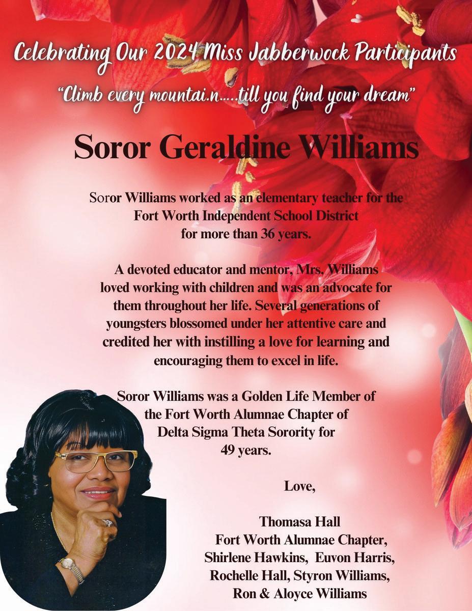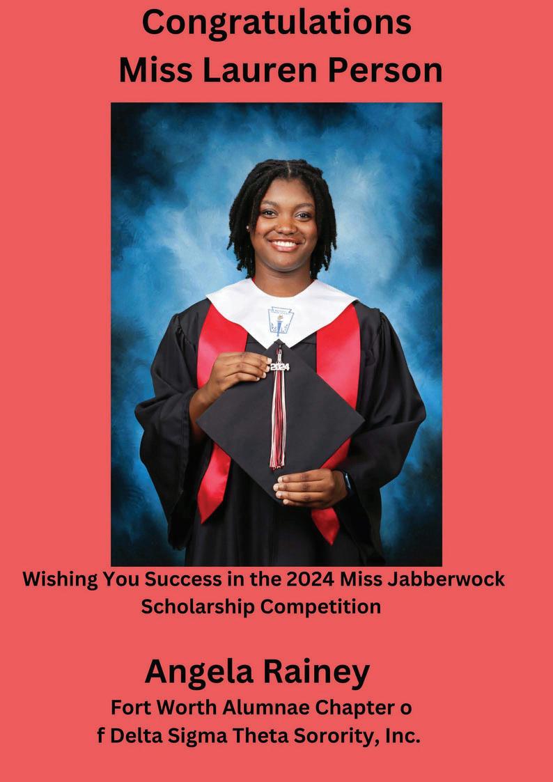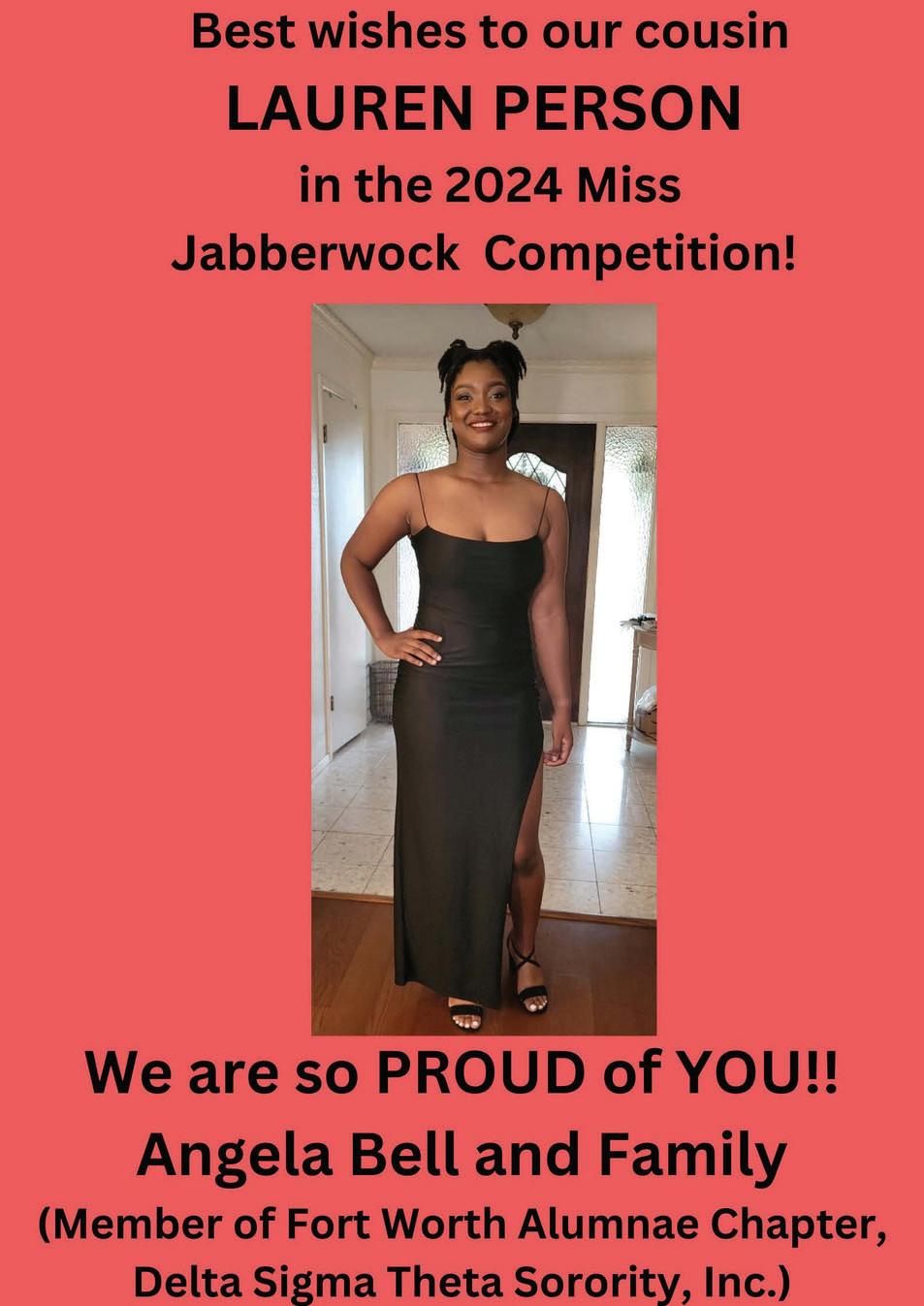 On behalf of the Fort Worth Alumnae Chapter of Delta Sigma Theta Sorority, Inc., it is my honor to welcome you to the 47th annual Jabberwock program. This longstanding tradition celebrates the growth and maturity of our youth, and we are thrilled to showcase their achievements once again.