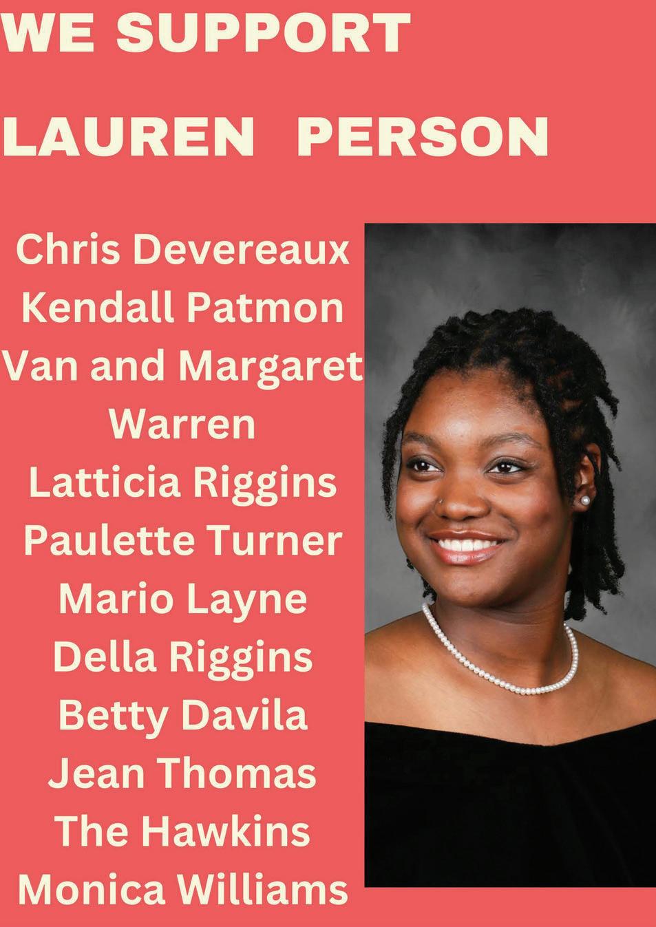 NationalHonorSociety,participatesinUILLiteraryCriticismand Geographycompetitions,BlackStudentUnion,ConcertChoir,KeyClub, theAmericanSignLanguageClub,andservesontheMartinStudentNews asabroadcastanchor.Laurenalsowasselectedasa2024BankofAmerica StudentLeader.Laurencontinuestostriveforexcellenceineverythingshe does.