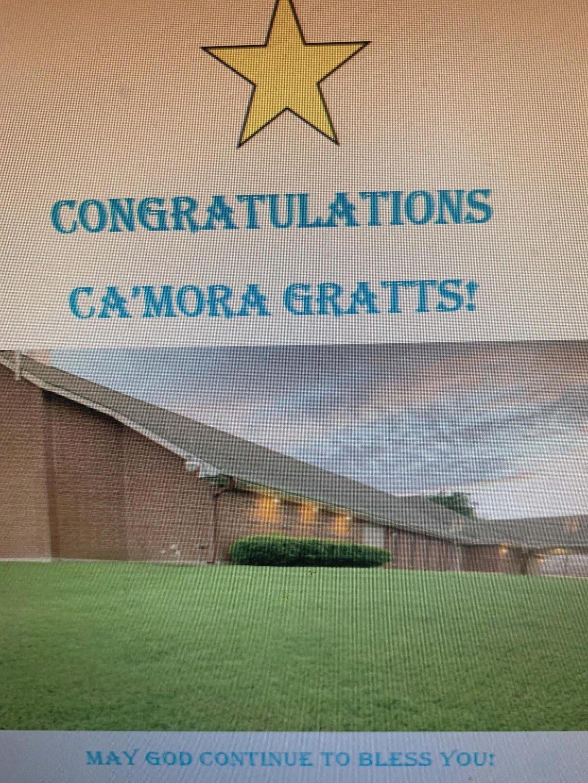 Ca’MoraGratts isthedaughterofChristineLovingandAntwoinGrattsof FortWorth,Texas.AttendingCristoReyCollegePreparatoryHighSchool inFortWorth,Texas,sheishighlyinvolvedinandoutsidetheclassrooms. Ca’MorahasreceivedtheAcademicSuccessAward,theStudentLife Award,andtheTri-MMusicHonorSocietyprovinghowdedicatedsheis toheracademicsuccess.WhilemaintaininganA&BHonorRoll,Ca’Mora spendshertimeasCo-CaptainofCristoRey’sVolleyballteam,Captainof theVarsityShowChoir,andFounderandPresidentoftheBlackStudent Union.Ca’Moraissettingtrendsandleavingalastingimpressionasshe buildsalegacyforherselfandherpeers.