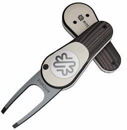 A tool in touch with nature. The Pitchfix Woodie™ (#SLPFXW) is a premium switchblade divot repair tool designed with unique wood-effect finishes that bring a natural, sophisticated look to the course. Its softtouch surface feels like authentic wood, offering an elegant, tactile experience. The removable magnetic ball marker provides space for custom branding, making it perfect for corporate giveaways, golf events, and retail promotions. For more information, please visit www.hpgbrands.ca