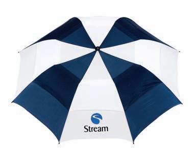 Keep dry with the 58” Vented Auto Open Folding Golf Umbrella, which features a large vented canopy made from sturdy pongee materials. It has a folding, two-section, hexagonal metal shaft that connects to lightweight fiberglass ribs to provide structure and support. This wind-resistant umbrella has a sturdy foam handle, features an integrated wrist-strap, and folds to a length of 21” when closed. The umbrella can be conveniently stored inside the included case, which matches the canopy colour and has a comfortable shoulder strap. Visit www.pcna.com for more details