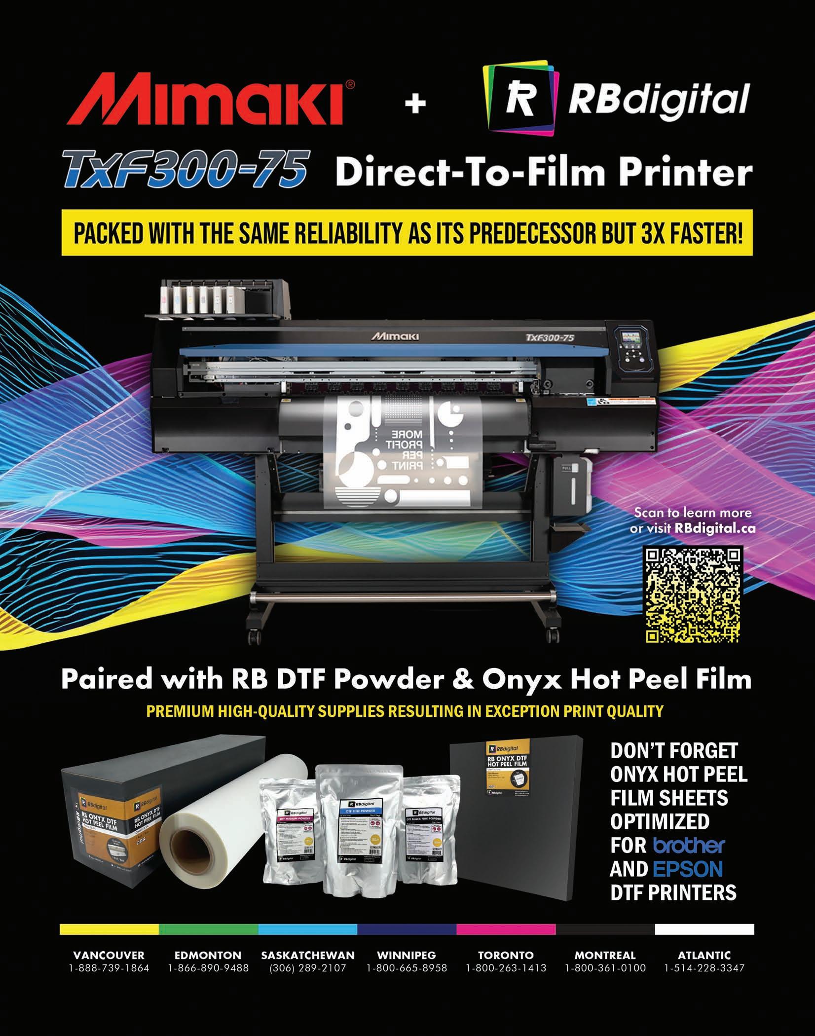 The new 18” DTF printer and shaker makes for easy transition from DTG printing. If shop floor space is limited, the foot print of the 18” DTF printer and shaker requires less area than our larger 24” model. Plus you can print 16”x20” DTF transfers to match your DTG output. All Value-Rite industrial DTF printers and shakers come with 1 full year warranty with onsite service across Canada. For details, contact Valuerite.com 1-800-242-8069, info@valuerite.com