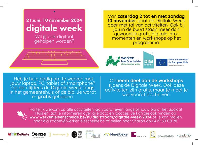 Op zaterdag 26 oktober kunnen jongeren tussen 8 en 16 jaar leren programmeren. Vanaf 9:30 tonen enkele toffe coaches jou op een speelse manier hoe je werkt met Scratch en andere eenvoudige programeertalen. Breng je eigen laptop mee naar de bib en ontdek al doende. Deze activiteit is gratis, maar je moet wel inschrijven. nazareth.coderdojobelgium.be 09 396 49 19