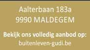 9 PLANTENCENTRUM o.l.v. 2 tuinarchitecten MET EIGEN KWEKERIJ BREDEWEG 2 - NEVELE (POESELE) - Tel. 09/371.64.01 meer informatie: www.bioflora.be Open: 9u tot 12u en 13u tot 18u / Zondag tot 15u Gesloten: dinsdag tot woensdagmiddag Het moment om te planten is weer aangebroken -10% op alle vaste planten en bodembedekkers (ook op bestellingen) Weekactie van 7 t.e.m. 15 okt. Plant nu ook al: - herfstverkleurders - besdragende sierheesters - siergrassen, klimplanten, rozen, … Binnenkort ook alle haagplanten, fruit- en sierbomen TUINHOUT poolhouse - cottage bijgebouwen - tuinhuisjes blokhutten - garages - carports - paardenstallen houten terrassen - alle houtafsluitingen LEVEREN - PLAATSEN ook voor de doe-het-zelver Kerkstraat 88 Dikkelvenne-Gavere Tel. 09 384 21 13 www.goeminnetuinhout.be Openingsuren: dinsdag tot en met vrijdag 8u00 - 12u00 en 13u00 - 18u00, zaterdag 8u00 - 12u00 en 14u00 - 16u00, maandag en zondag gesloten Voor vragen of info: info.coiwestvl@aavlaanderen.org 0498/37 87 61 (Kaatje) Open infovergadering ALCOHOLSIME - 21 oktober 2022Iedereen welkom! Georganiseerd door A.A. West-Vlaanderen Waar: zaal ‘t Haantje Brandstraat 105, 8755 Ruiselede Aanvang: 20u (vermoedelijk einduur 22u) Sprekers: psychiater dr. W. Vandewalle (st-Andriesziekenhuis Tielt) ervaringsdeskundige Al-Anon 2 ervaringsdeskundigen A.A. Gelegen te Ursel Enkel op afspraak 0494/85.73.93
