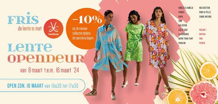 3 Lostraat 44 • 9880 AALTER OPEN: maandag 13.30 - 19.00u, dinsdag t.e.m. vrijdag 08.30 - 19.00u, zaterdag 08.00 - 18.00u, zondag 08.00 - 12.00u Profiteer nu bij SPAR Aalter Eagle Creek California wit of rood 75 cl 9,50 2 voor € 7,12 hetzij € 3,56/fles -25% vanaf 2 flessen Met Taka New Zealand Marlborough Sauvignon blanc 75 cl € 17,98 2 voor € 13,48 hetzij € 6,74/fles Spar wijnweken Van 14 maart t.e.m. 10 april Met Notte Rossa DOP Primitivo di Manduria rood - 75 cl € 59,94 2 voor € 29,97 hetzij € 5,00/fles -25% vanaf 2 flessen 3+3 GRATIS volg ons op FASHIONDAYS 2024 STOFFENVERKOOP van 11 t.e.m. 16 maart KORTING tijdens de FASHIONDAYS V.U.: Bergez ColetteBruggestraat 105Ruiselede Editie 2024 9 - 12u & 13.30 - 17.30u 9.30 - 12u woe.13 maart don. 14 maart vrij. 15 maart zat. 16 maart zon. 17 maart Angels - Batida - Betty Barclay - Brax - Four Roses - Golléhaug - Heart Mind K-Design - Leona - Punto - Raphaela by Brax - She goes Lala - Signe Nature Juwelen: Les Cordes Fynch Hatton - Fred Perry - Meyer broeken - Olymp Pierre Cardin - State of Art Nachtkledij: Perlina - Lohe - Peignora DAMES HEREN 10% Holléhaug State 0f Art Signe Nature Betty Barcley Shegoeslala Shegoeslala + GRATIS drankje Bruggestraat 105 - 8755 Ruiselede - T. 051 68 82 87 - info@bewico.be - www.bewico.be Openingsuren: maandag t/m zaterdag: 9-12u & 13.30/17.30u LOECKX.BE DINSDAG 19 MAART KUNST & ANTIEKVEILING KIJKDAGEN donderdag 14 maart van 10 tot 17 uur vrijdag 15 maart van 10 tot 17 uur zaterdag 16 maart van 10 tot 17 uur zondag 17 maart van 10 tot 13 uur INGELANDGAT 4 - GENT 09/223 37 93 Kostuums en smokings VERHUUR Openingsuren: Di - Vrij 9u30 tot 12u en van 13u30 tot 18u Zaterdag 9u30 tot 12u en van 13u30 tot 17u zondag en maandag gesloten Wingenestraat 8C - Maria Aalter 09/374 65 65 - www.cony.be