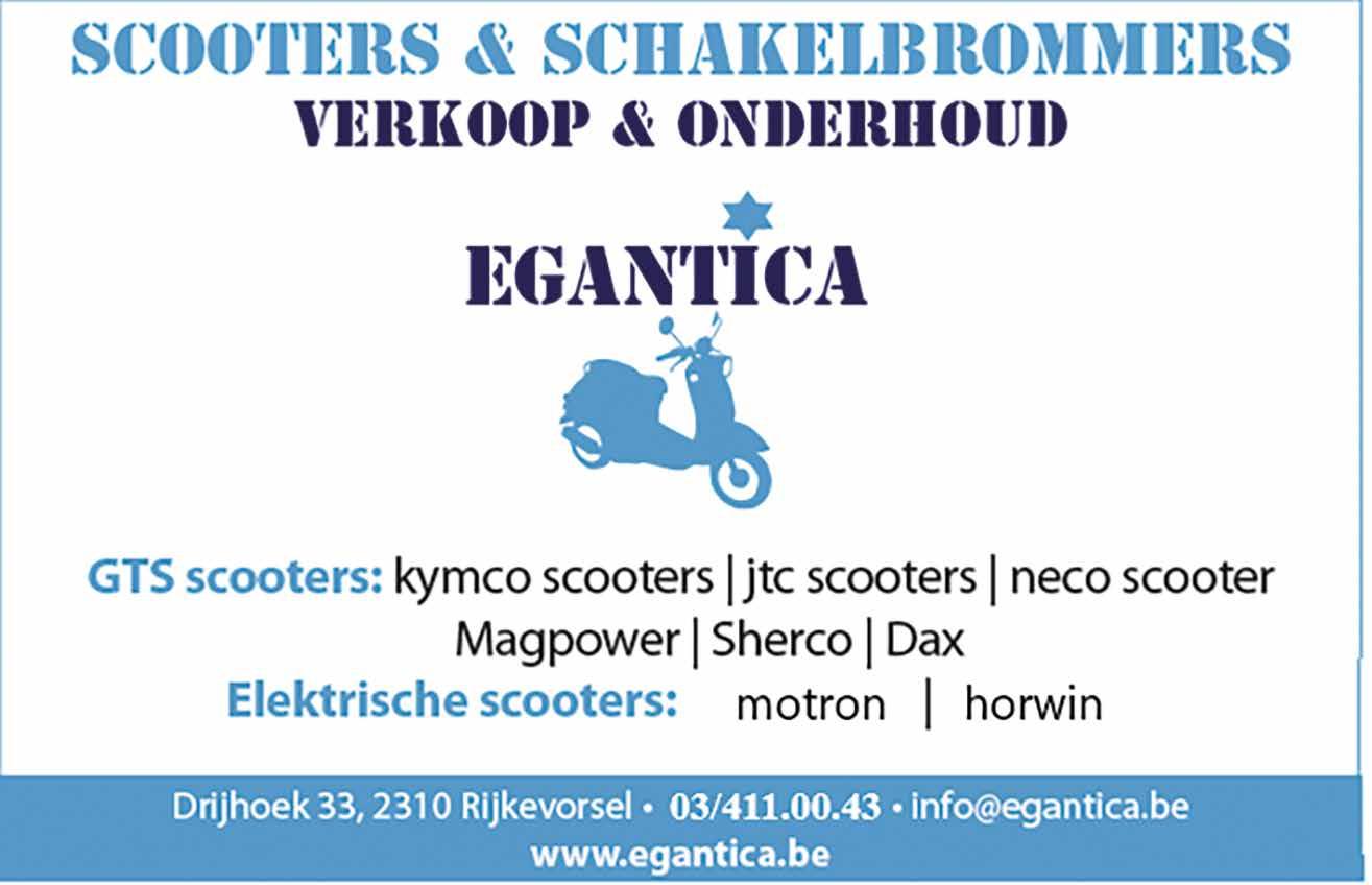 EGANTICA scooters & schakelbrommers verkoop & onderhoud Drijhoek 33, 2310 Rijkevorsel • 0494 94 05 74 • info@egantica.be www.egantica.be GTS scooters: kymco scooters | jtc scooters | neco scooters | vespa scooters | Nipponia Elektrische scooters: Magpower | Scherco | Da1