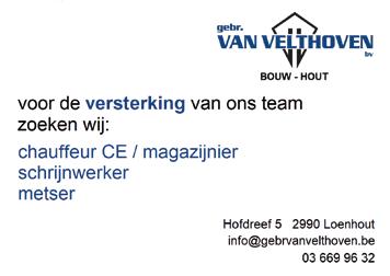 4 IMPULS Adverteren in Impuls Bel of mail voor alle informatie 03 295 55 58 info@impulsmedia.be www.impulsmedia.be Vrijheid 8 2320 Hoogstraten NAME PHONE LOCATION ADDRESS MAIL WEBSITE NAME PHONE LOCATION ADDRESS MAIL WEBSITE LOCATION MAIL NAME PHONE LOCATION ADDRESS MAIL WEBSITE thuis in de Kempen Weektoppers bij de Verfmarkt 16 RaamSelect, steeds op zoek naar het beste 19 Beginnende lente bij Van Tendeloo 19 Antiquair koopt aan 23 Beerse Vlimmeren Oostmalle Westmalle Meerle Loenhout Merksplas Wortel Rijkevorsel Brecht Overbroek Rommersheide St.-Job (noord) Gooreind St.-Jozef St.-Lenaarts Wuustwezel Meer Hoogstraten Minderhout Zoersel Wechelderzande vacatures 26 AANKOOP MOTORHOMES Export Wij kopen uw camper Tegen de beste prijs Betaling - Banking - Cash Alle merken - Alle modellen Profiel - Integraal - Alkoof Van recente of oude Zonder technische keuring - Zonder garantie In goede staat of te repareren exm@outlook.be Tel: 0475 77 33 33 7/7 ERGONOMISCH ZITCOMFORT VOOR THUIS EN OP HET WERK ErgoFeeling® Het juiste gevoel *bij aankoop nieuwe relaxzetel geldig van 15 feb tot 15 mrt 2023, niet cummuleerbaar met andere acties GETEST & AANBEVOLEN • Zithoogte en zitdiepte op maat • Armleghoogte op maat • Verschillende zitbreedte verkrijgbaar • 3 motors en lift • Opblaasbare verstelbare lendensteun • Verstelbare hoofdsteun • Lage- zwaartekrachthouding • Sta op hulp, gemakkelijk opstaan • Tot 10 jaar fabrieksgarantie* Overname oude zetel €150,-* “Het beste voor je rug” Gasthuisstraat 16 - 2340 Beerse Open: di t/m vrij 9.30-12 & 13.30-18 u zat 9.30-17u www.ergofeeling.be 014 61 62 00 04 de spot op Beerse