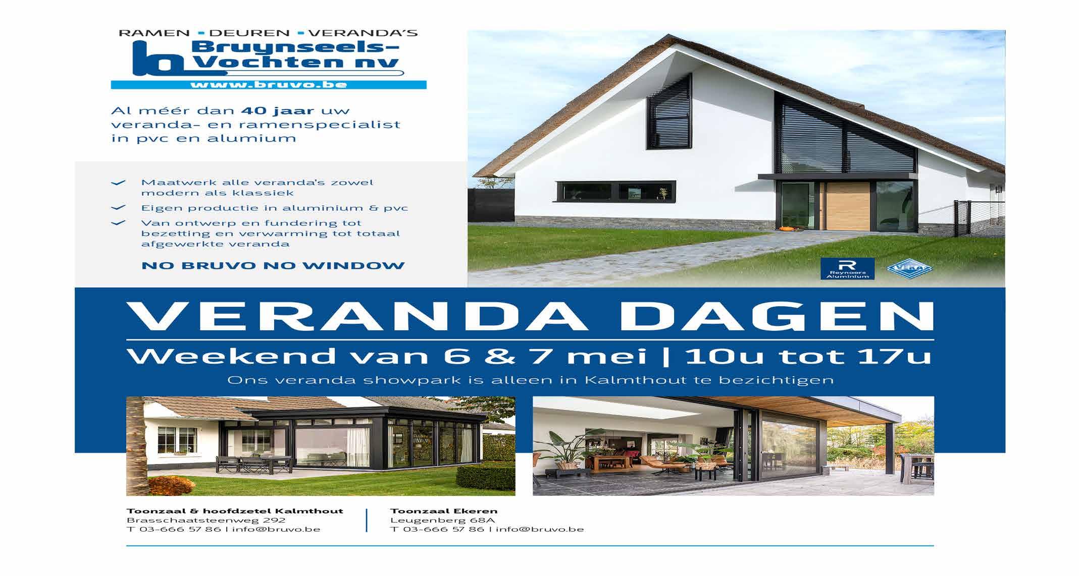 5 Eigenproductieinaluminium&pvc bezeingenverwarmingtottotaalToonzaal&hoofdzetelKalmthout Brasschaatsteenweg292 T03-6665786|info@bruvo.be ToonzaalEkeren Leugenberg68A T03-6665786|info@bruvo.be OPENDEURDAGEN Weekendvan25&26maart|10utot17u OnsverandashowparkisalleeninKalmthouttebezichtigen NOBRUVONOWINDOW Maatwerkalleveranda'szowel modernalsklassiek Eigenproductieinaluminium&pvc Vanontwerpenfunderingtot bezeingenverwarmingtottotaal afgewerkteveranda Alméérdan 40jaar uw veranda-enramenspecialist inpvcenalumium SPECIALE VOORWAARDEN Bezoek onze veranda dagen enkel in Kalmthout