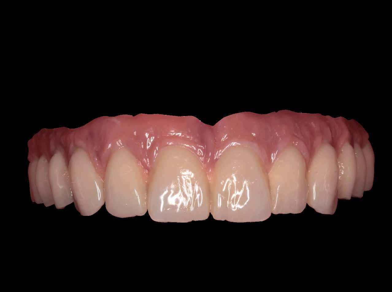 The perfect interaction of the neo.lign® denture teeth and the crea.lign® veneering composite enables individual, three-dimensional and dynamic layering in red-white aesthetics - for a lasting and harmonious smile of the patient.