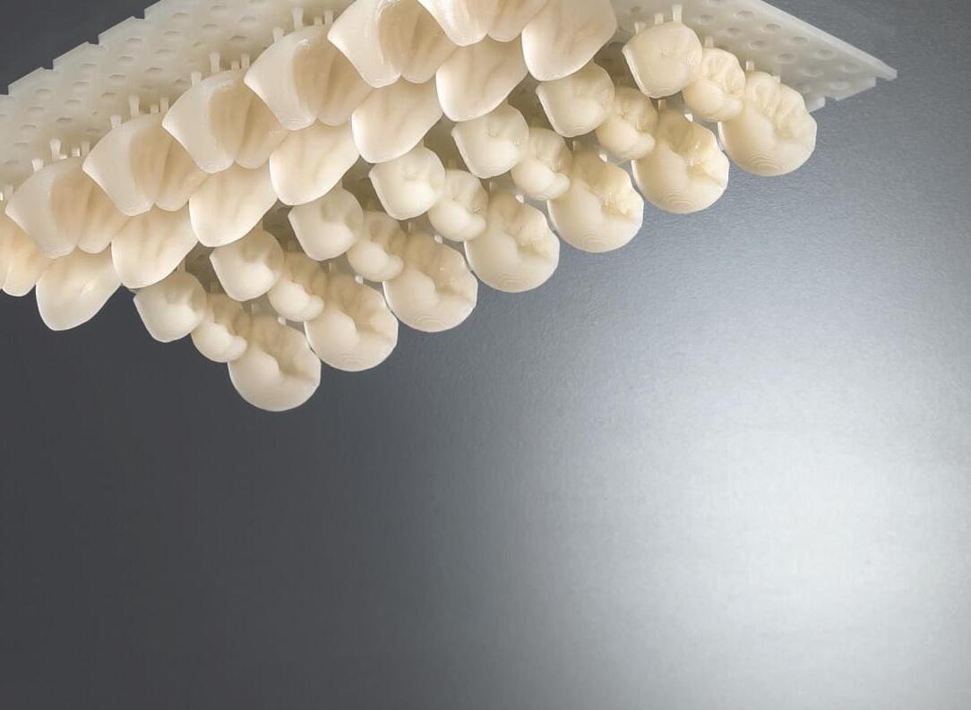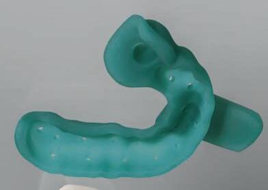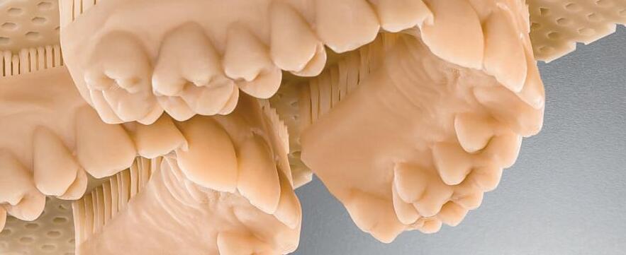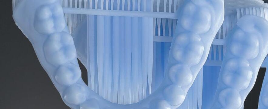 Light-curing formulation for 3D printing of flexible gingival masks for dental models.