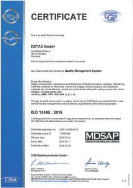 All FREEPRINT® Class IIa resins have been MDR-certified since October 2020. Thus, DETAX 3D materials are among the first of its sector with MDR certification.