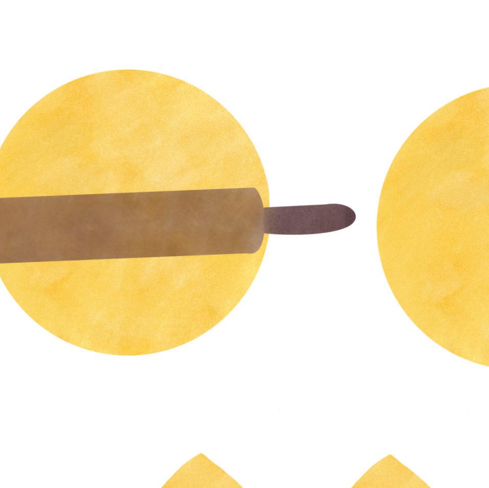 After resting, transfer the dough to a floured surface. Use a rolling pin to flatten it to about 1/8-inch thickness. Use a circular cutter, such as a glass or cookie cutter, to create circles from the rolled-out dough. This shape is ideal for pierogi, allowing easy folding and sealing. Set aside the remaining dough scraps.