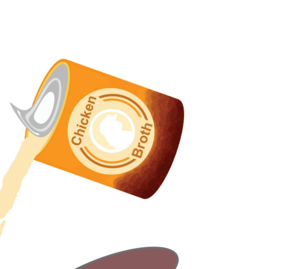 In a saucepan, bring the chicken broth and butter to a boil. Add salt to taste. Reduce the heat to low and gradually add the flour while stirring until a smooth dough forms. Cook for another 2-3 minutes, stirring continuously. Remove from heat and let the dough cool slightly.
